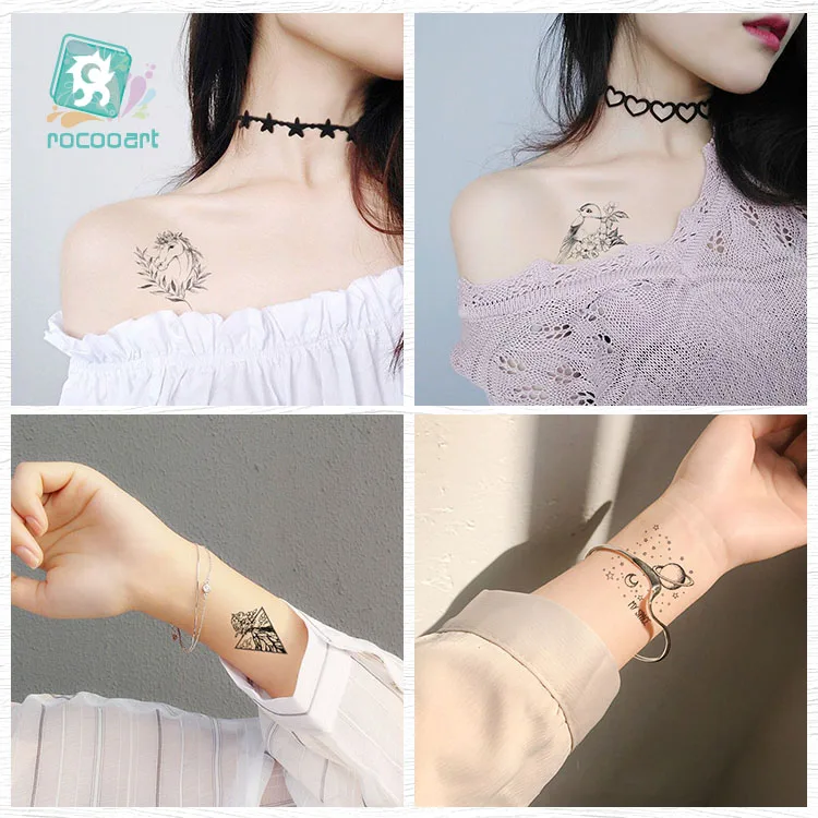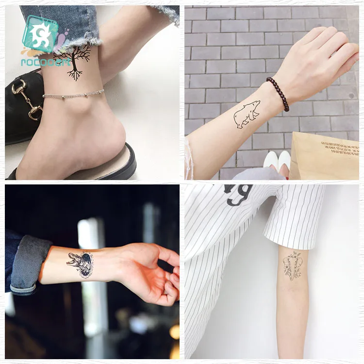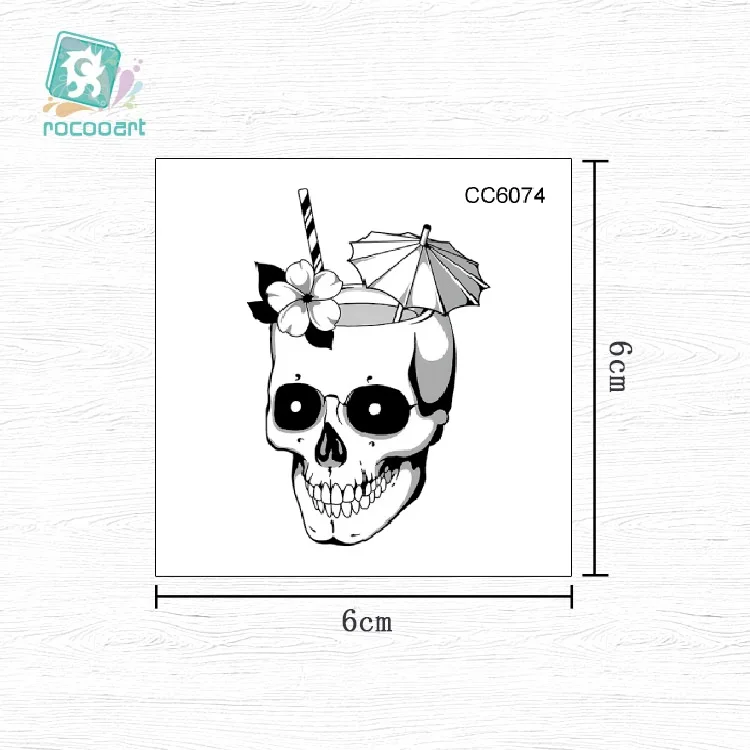 Татуировка Rocooart с черепом маленькая Старая школа, татуаж, большой медвежонок, искусственная татуировка, боди-арт, водонепроницаемые Временные татуировки, наклейки, натуральные татуировки