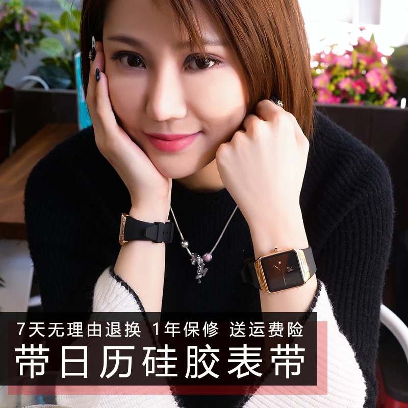 Часы наручные унисекс с квадратным циферблатом, модные роскошные брендовые кварцевые с силиконовым ремешком и золотым чехлом для женщин и платьев