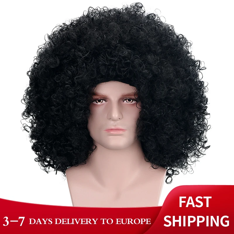 Free Beauty длинные курчавые вьющиеся синтетические черные 16 дюймов косплей на Хэллоуин забавные афро волосы для мужчин вечерние Термостойкое волокно