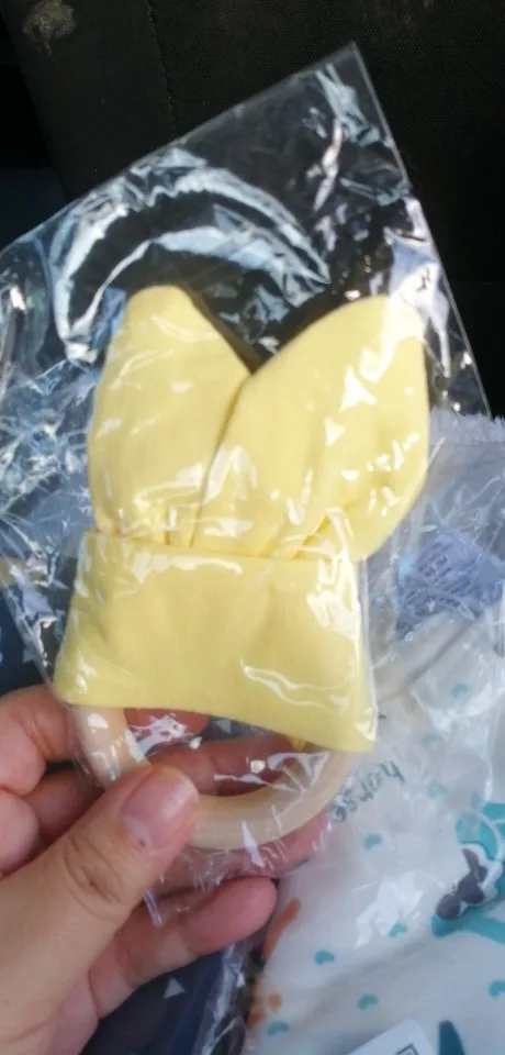 Ушки почти не шуршат, внутри шуршалка не пришита или фигово пришита, но она вся скомкалась и нечего там шуршать. Деревянное кольцо норм.