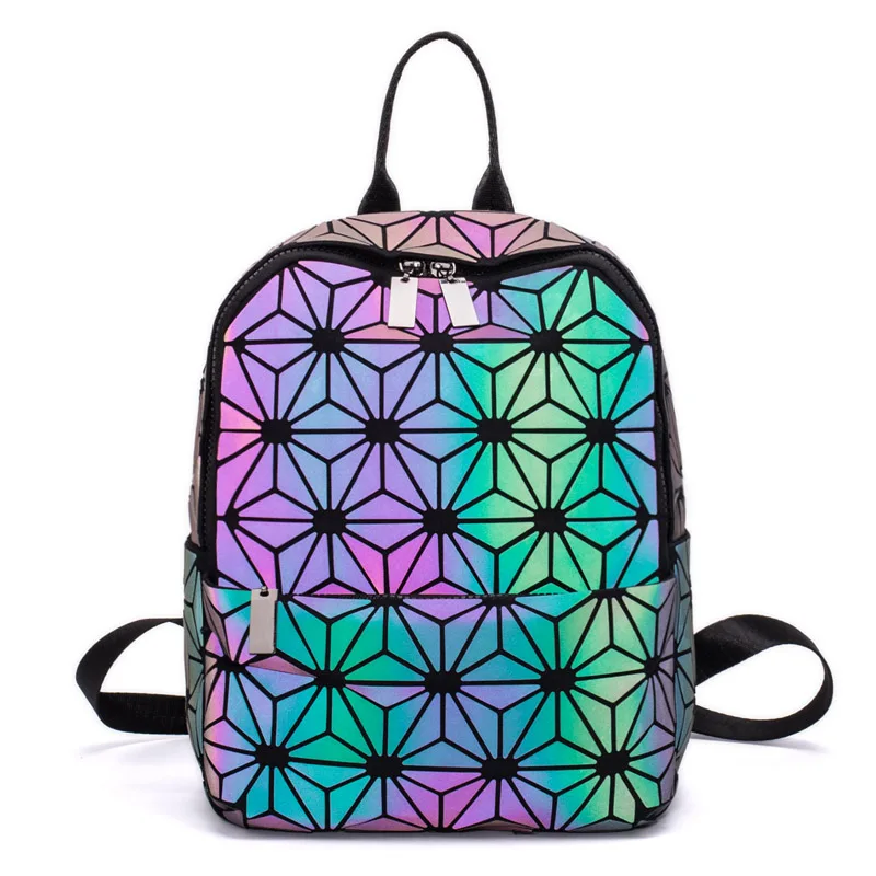 Женские рюкзаки Bao, Светящийся рюкзак с геометрическим узором для девочек-подростков, школьные голографические Рюкзак В Форме Бриллианта