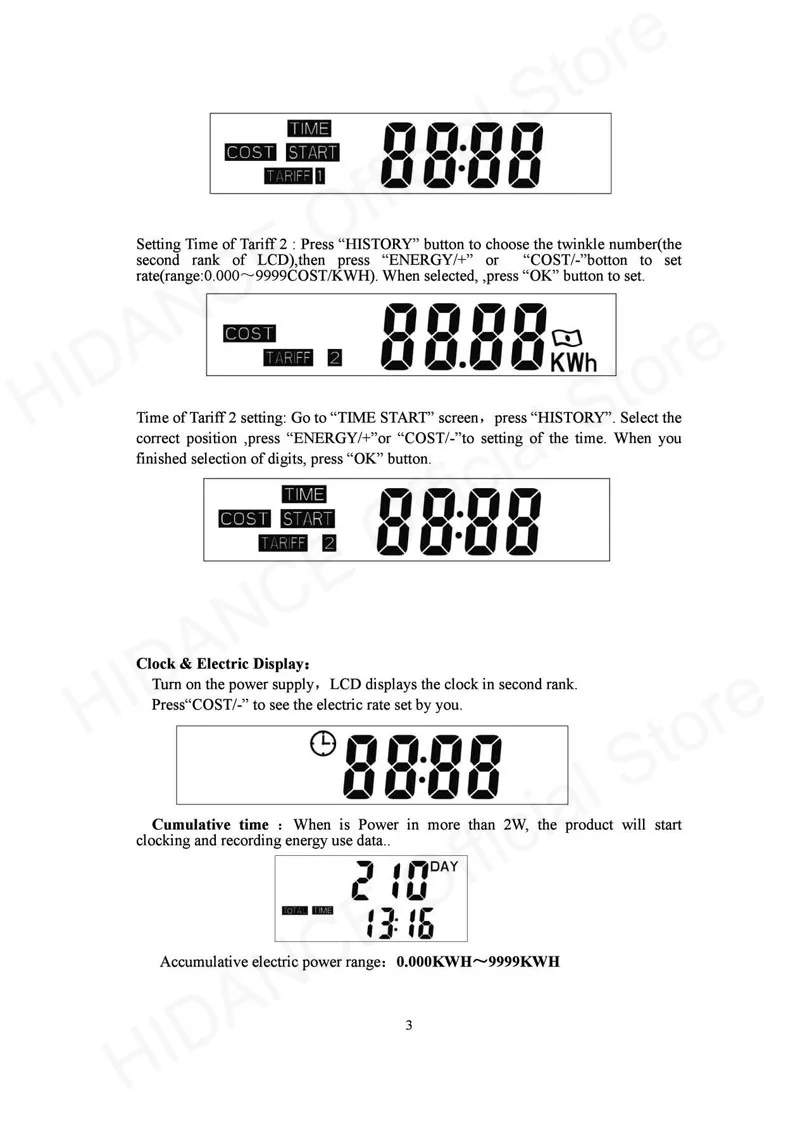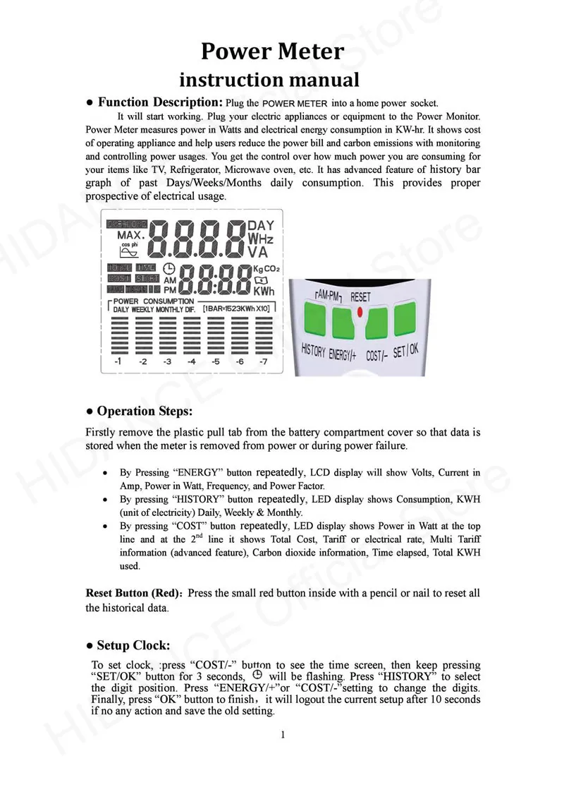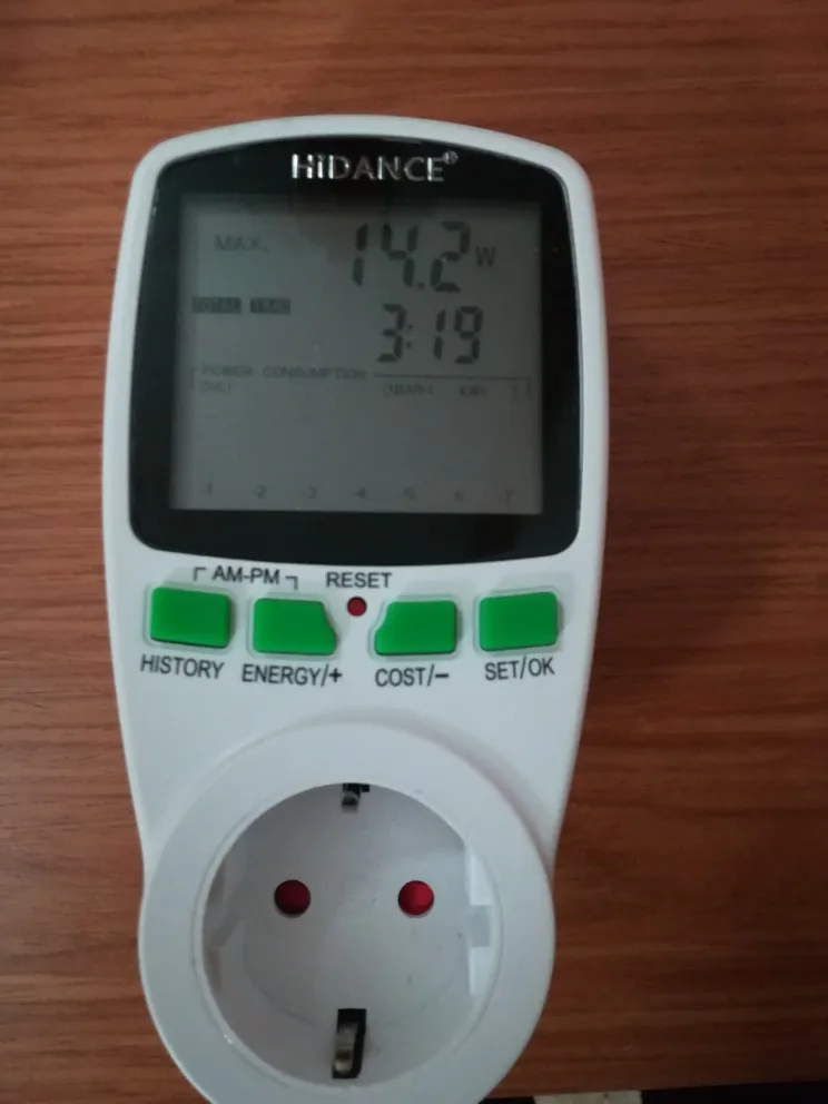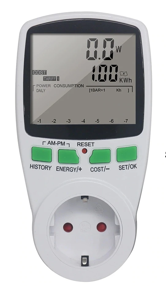 Доставлено быстро. Работает очень хорошо Большой, читаемый экран Уведомление на английском языке Довольно легко понять, как это работает Жаль, что экран не перегорит. Автоматическая расчет, сколько стоит электричество, вы должны зарегистрировать цену вашего кВт, и это делает расчет.