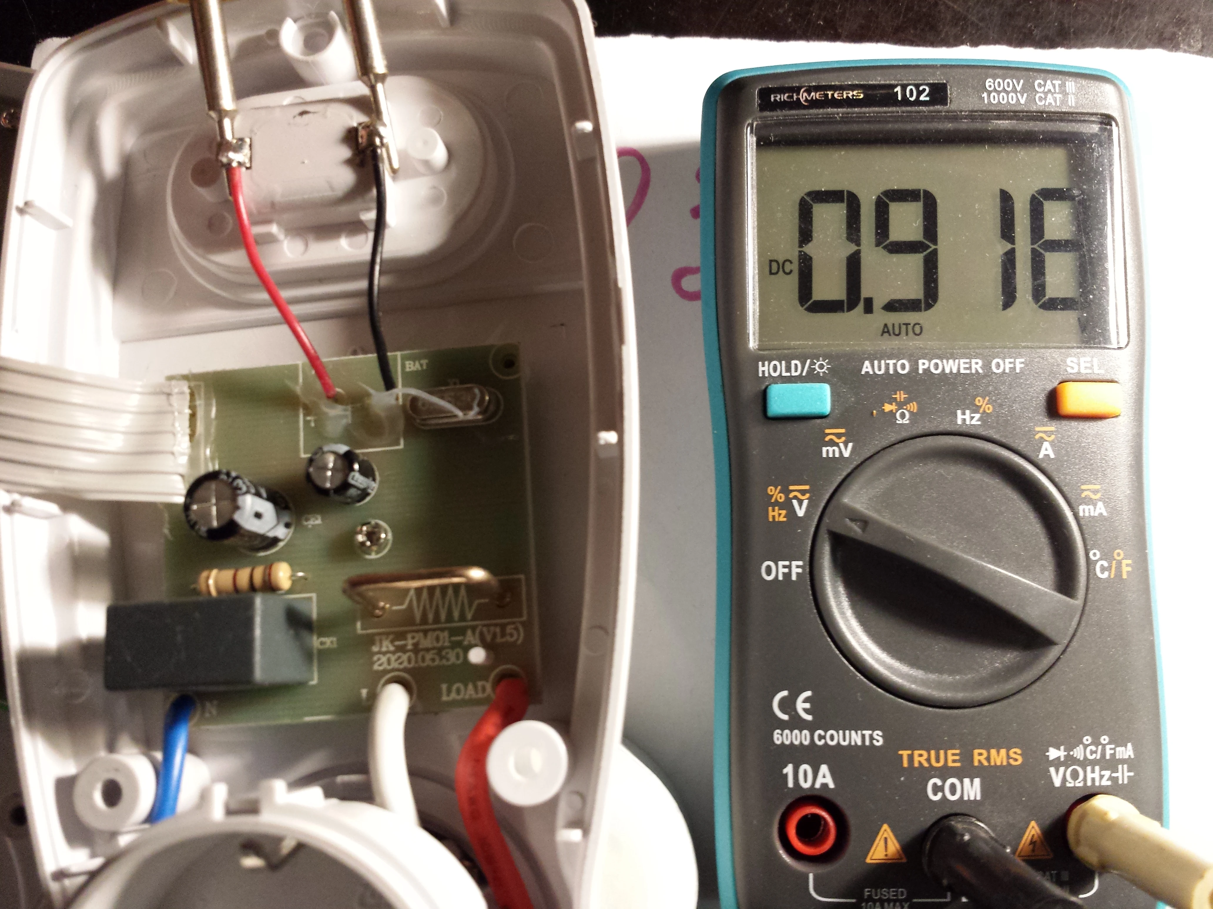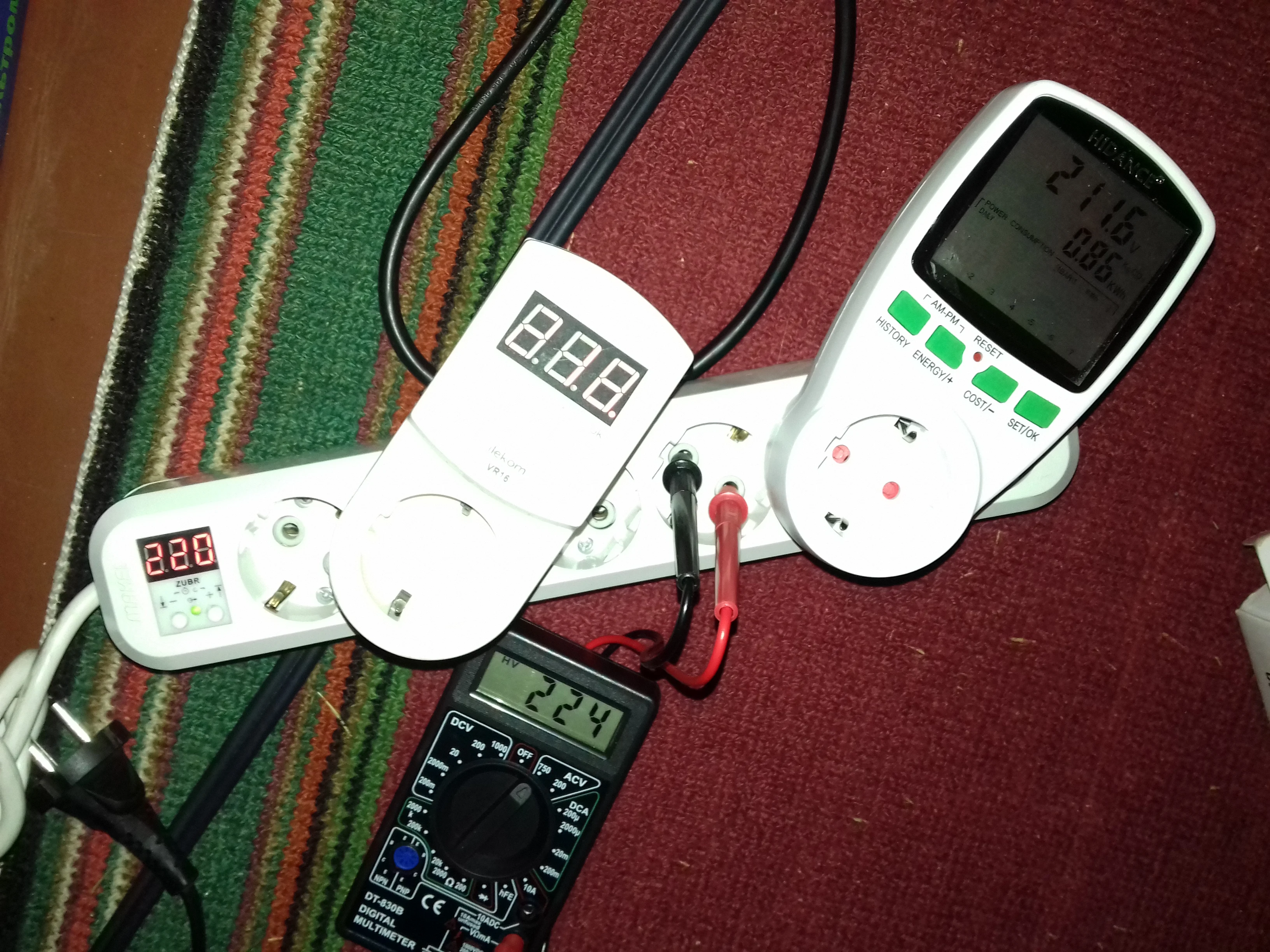 Самому ваттметру, ставлю четыре звезды, хотя стоило бы меньше. В принципе, всё работает. Показания напряжения занижает где-то на 0.5- 1 вольт, мощность показывает примерно соответствующую, для бытовых нужд сойдет. Но есть одно НО. В него категорически нельзя вставлять батарейки. Вставил новые, и оставил на ночь мониторить нагрузку. На утро, батарейный отсек был горячий, а батарейки испорчены. Припаял диод, но оказалось, на батарейки идет переменное напряжение. Конструкция внутри, очень хлипкая, разбирать дольше не стал, чтобы не сломать.