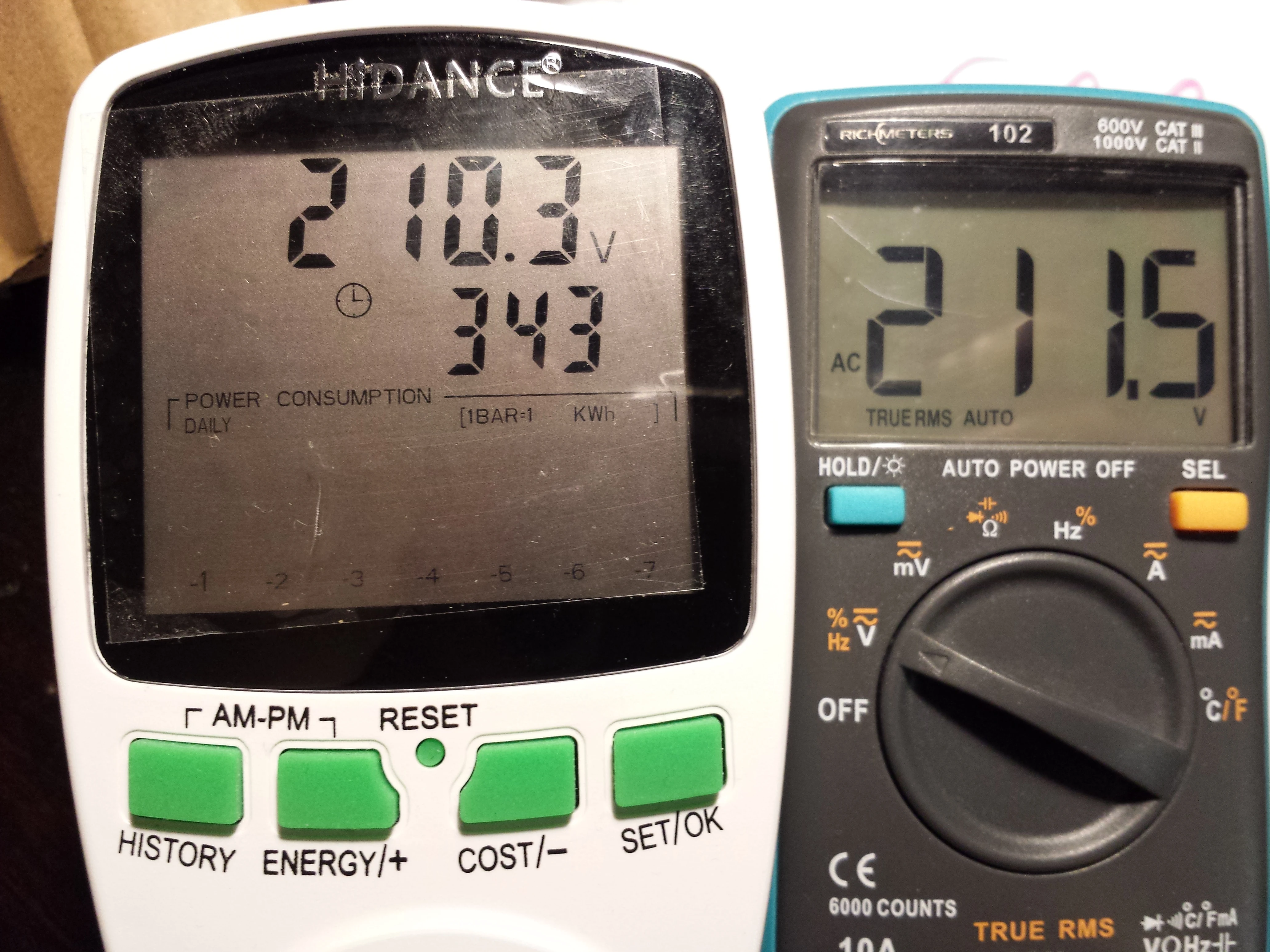 Всем бодрого времени суток. Товар не рекомендую, кат как в нем нет никакого смысла, если он показывает не верно. Жаль нельзя загрузить видео. Сперва сравнил показания по простому (на фото), подключил мультиметр и два реле напряжения. Счетчик показывает значительно меньше напряжение. После проверил на трех лампочках, вместо 100 Ватт показал 96 Ватт. Далее, отнес знакомому на осцилограф. Погрешность в показаниях мощности, напряжения и тока на 10,5 % ниже чем на самом деле. Про cos фи уже вообще говорить нечего. Настроек )калибровку) прибор не имеет. Все сделано максимально дешево. Не рекомендую.