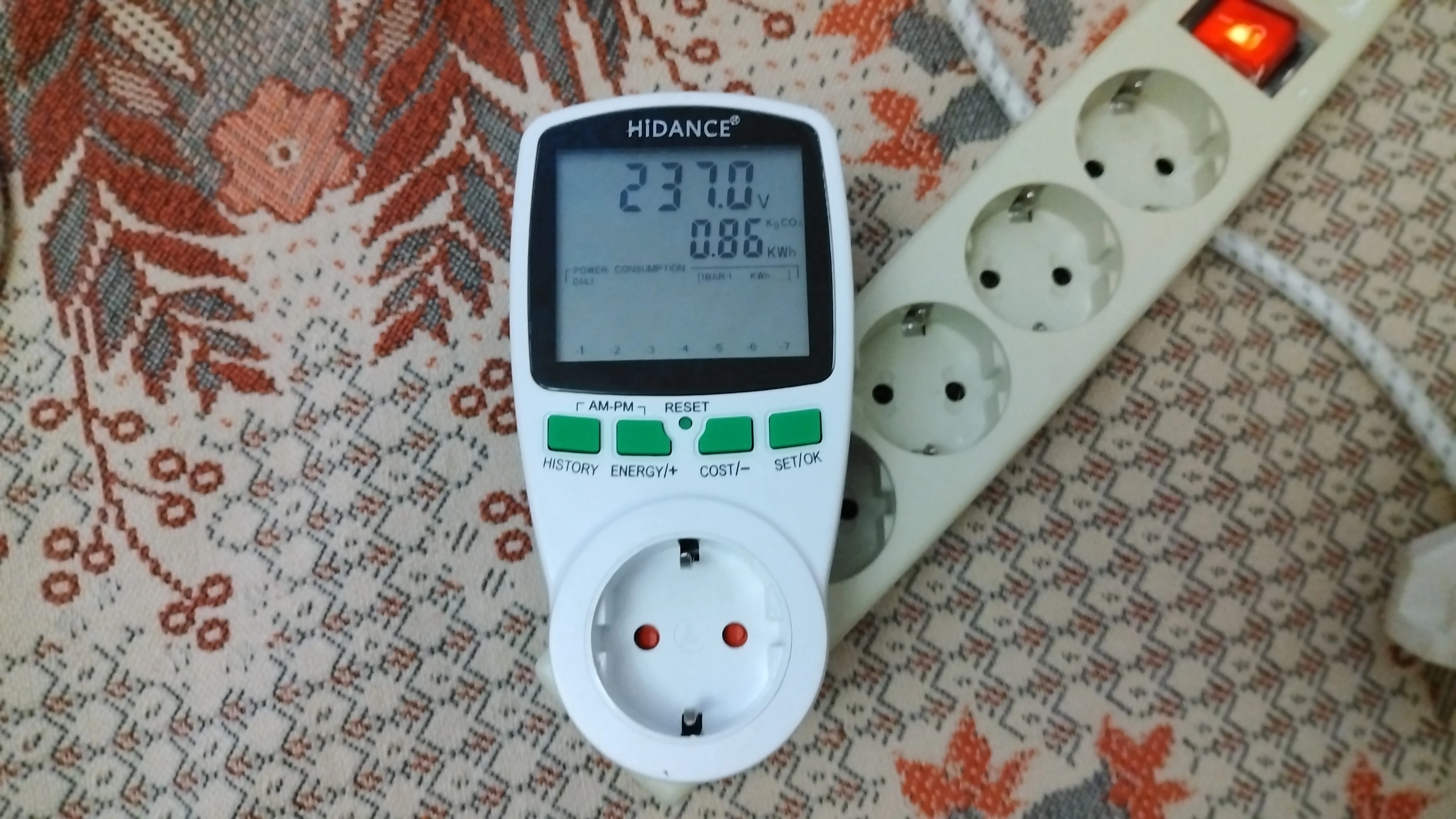 очень классный счётчик,указав сумму,выдает стоимость работу приборов и их потребление. например: чайник 750 Вт. закипятил 1л.воды,по стоимости энергии вышло 18 коп. ещё много чего проверю и много всяких