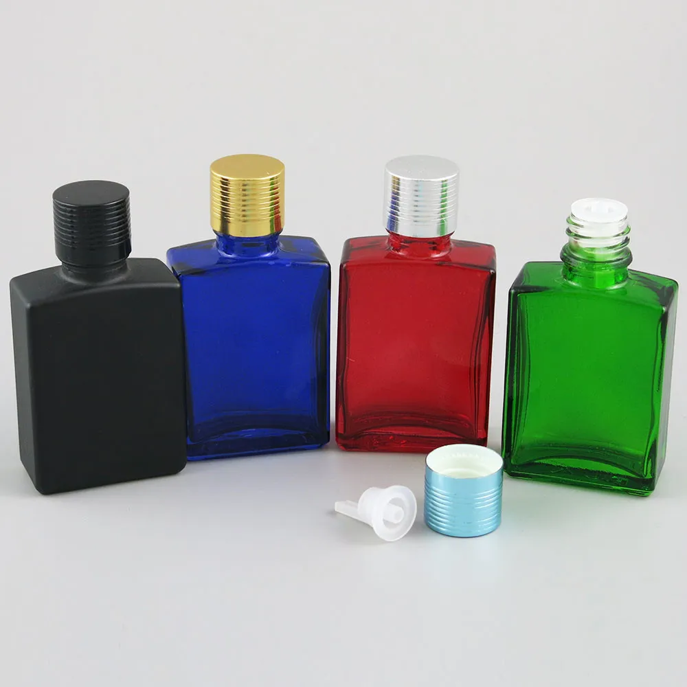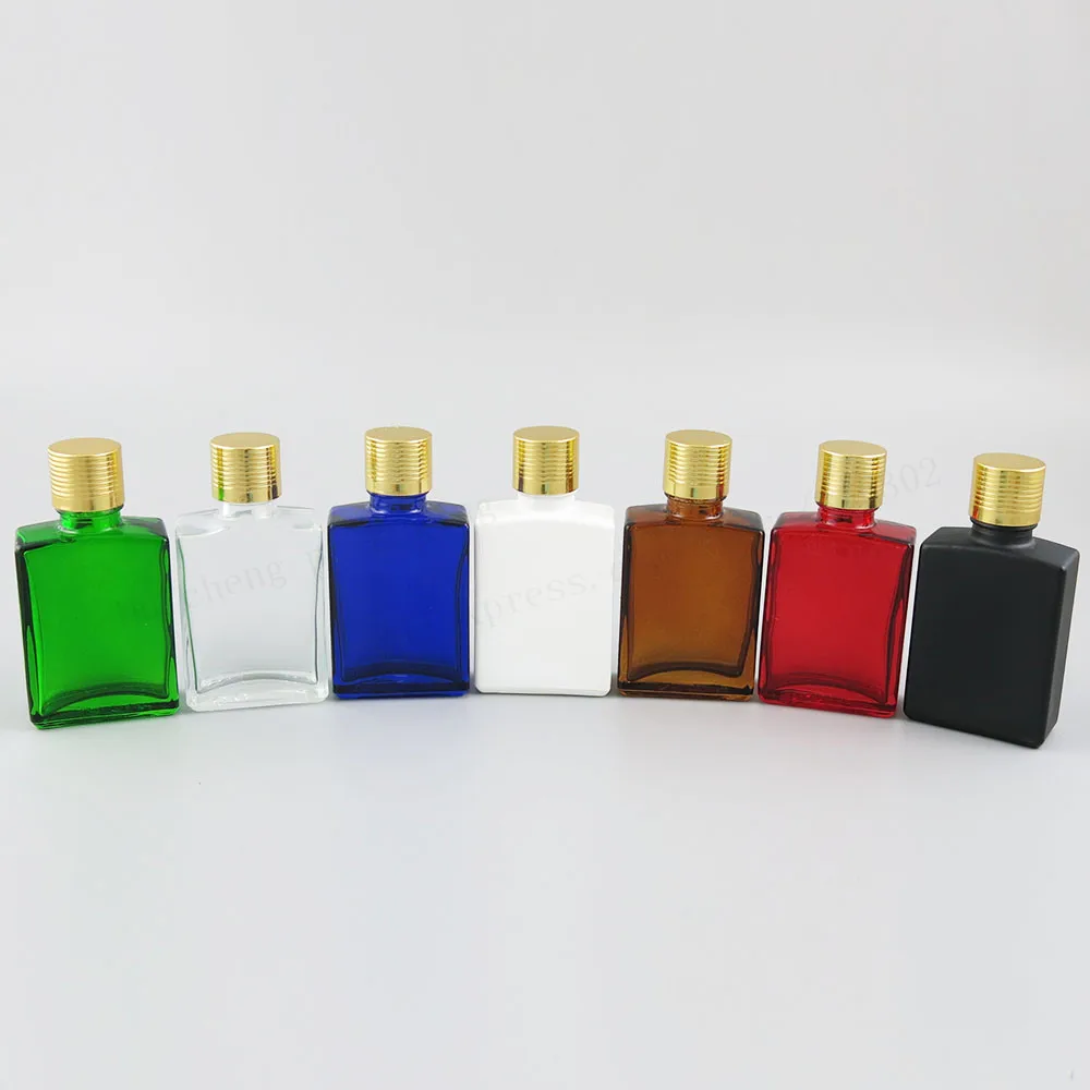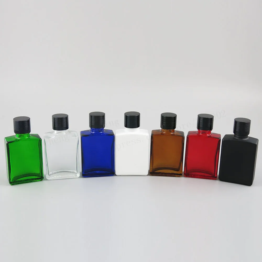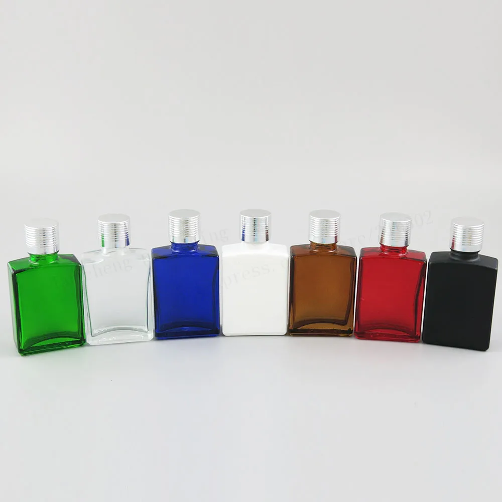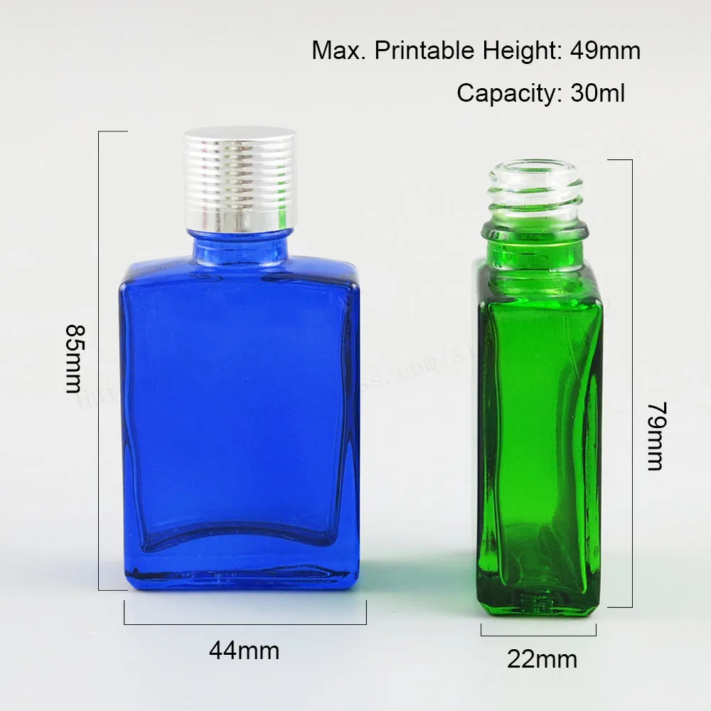 Emmpty 1 унция квадратная плоская черная белая прозрачная красная синяя зеленая стеклянная бутылка с алюминиевой бутылкой 30 мл кремовые косметические контейнеры