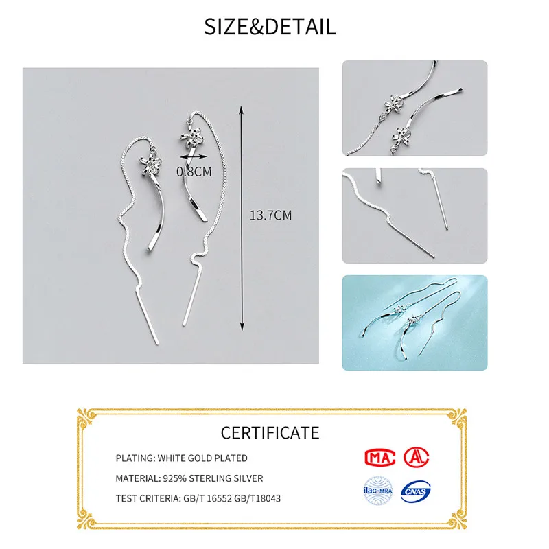Женские Висячие серьги INZATT в стиле бохо, элегантные длинные висячие серьги-подвески с волнистыми полыми цветами и кисточками из серебра 925 пробы, Подарочная бижутерия