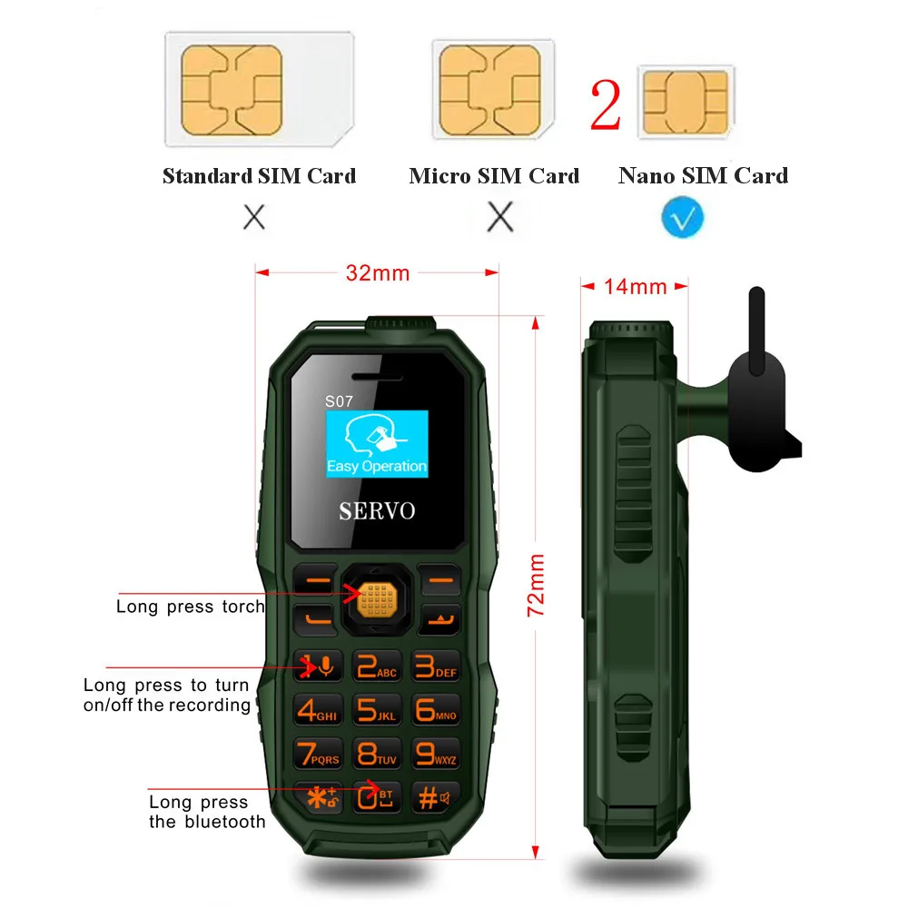 Мини сотовый телефон SERVO S07 с Bluetooth, 0,66 "крошечный экран, GSM, поддержка двух SIM-карт, Bluetooth наушники самый маленький мобильный телефона