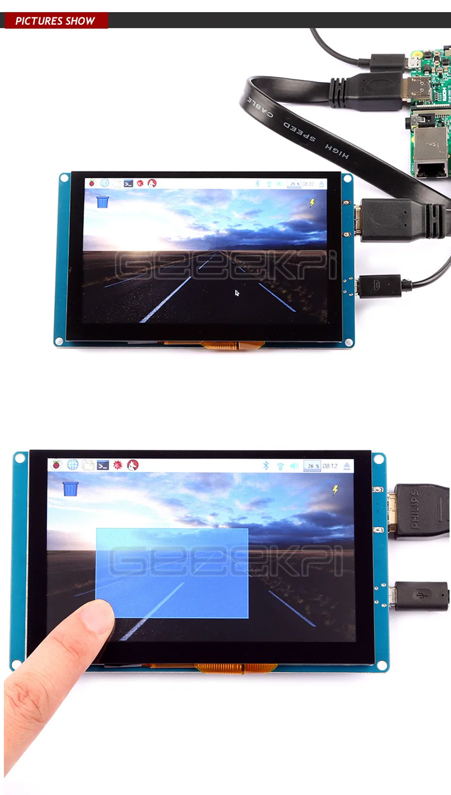 Дисплей GeeekPi, 5 дюймов, 800x48 дюймов, емкостный сенсорный экран, монитор для Raspberry Pi 4 B всех платформ, Windows, Beagle Bone черный