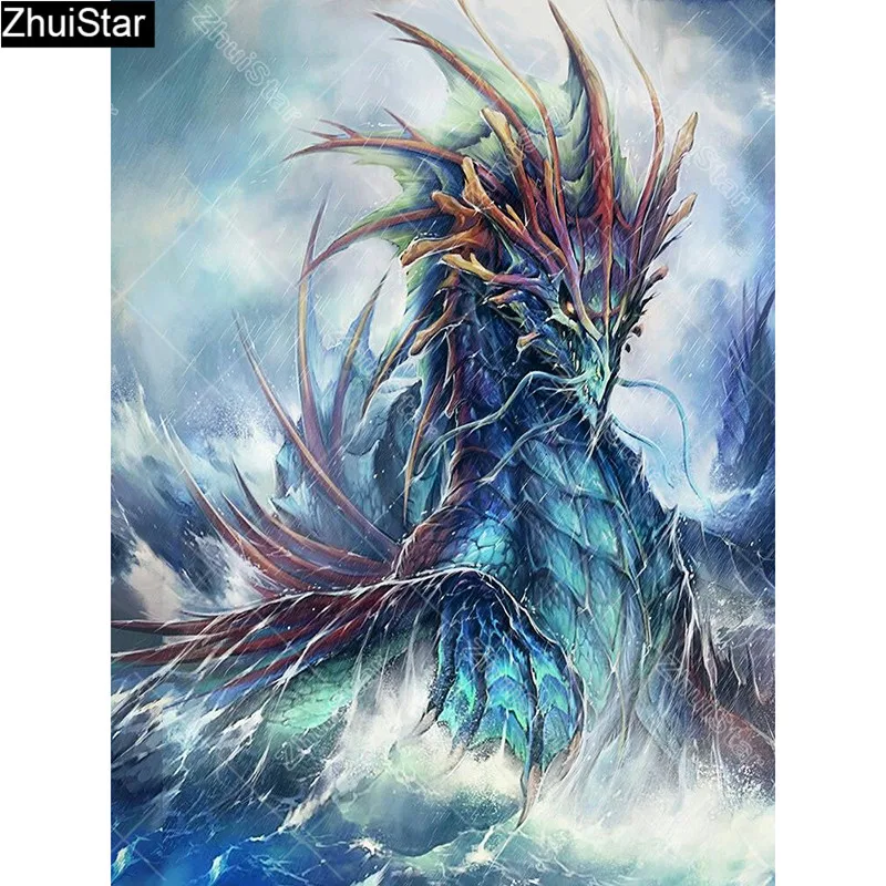 Алмазная 5D картина Zhui Star с полным наполнением, сделай сам, вышивка крестиком дракон на море, мозаика для декора CJ53