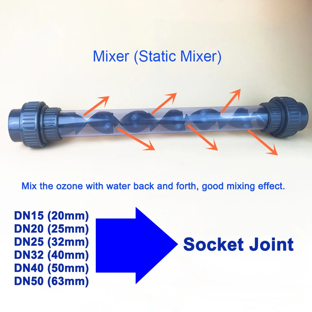 Высокоэффективное оборудование для смешивания озона из НПВХ, 12, 1, 34, 1,25, 2, 3, 4 дюйма, встроенный статический смеситель озона С опциональной PVDF трубкой Вентури