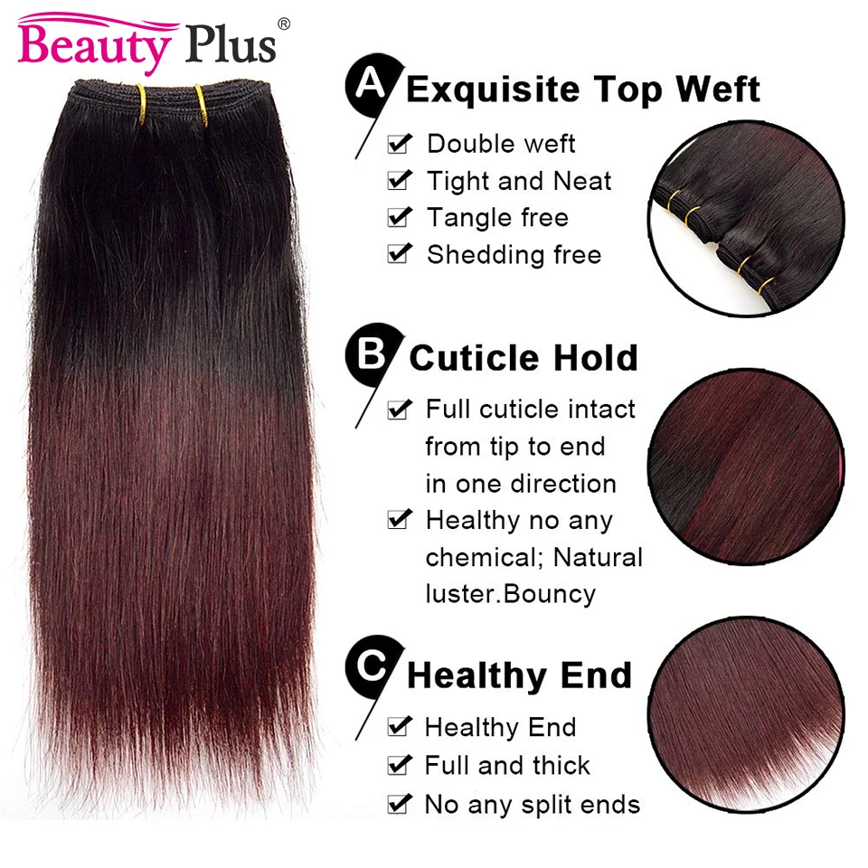 Пупряди цвета Бургунди с Омбре, человеческие волнистые темные корни, 8 дюймов, короткие перуанские прямые человеческие волосы Beauty Plus, 2 тона 1B 99J, человеческие волосы Remy