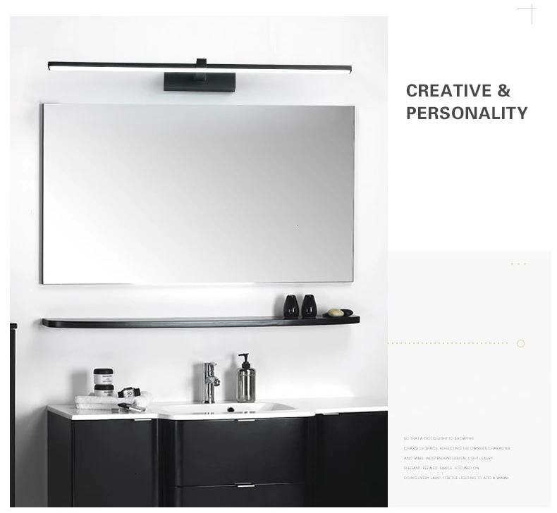 Светодиодные зеркальные светильники Настенные светильники ванная комната водонепроницаемый белый черный светодиодный плоский светильник Современный внутренний настенный светильник освещение для ванной комнаты макияж