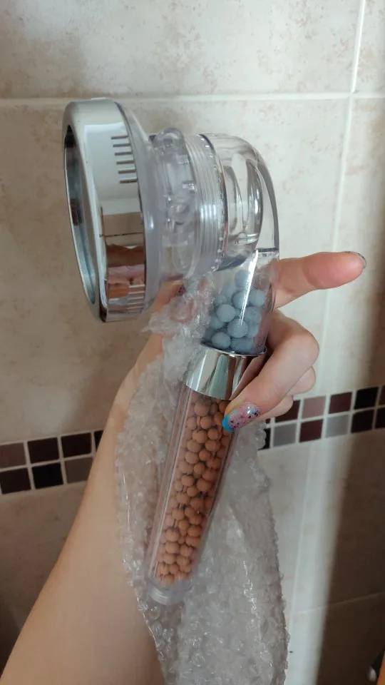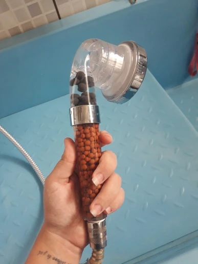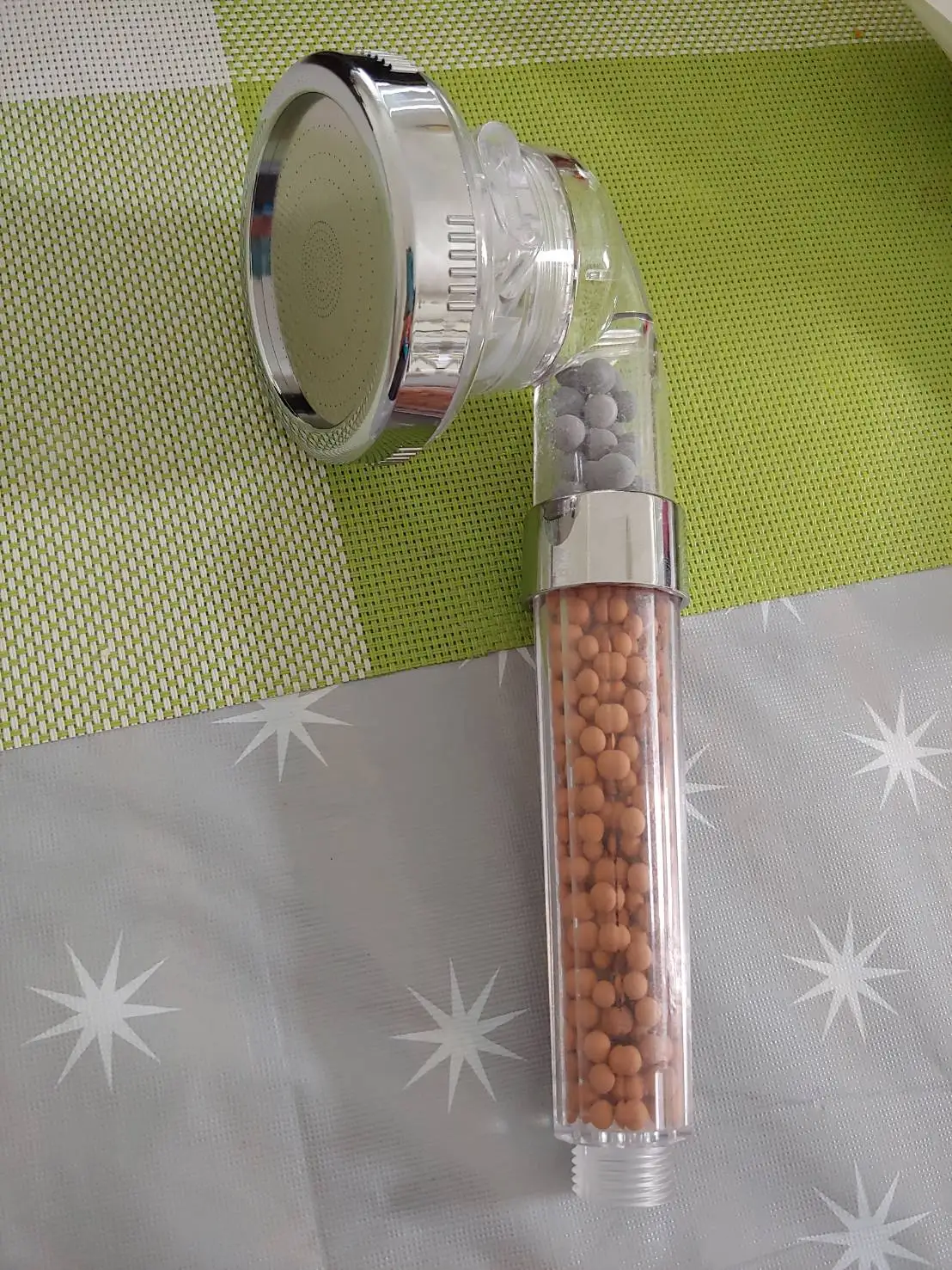 Идеально подходит для душа в испанском стиле, удобный и легкий дизайн, все из пластика, но хорошо сидит и не протекает. Другая вещь-это эффективность шариков внутри, они эффективны или это чистое украшение? Я не знаю, что определить.
