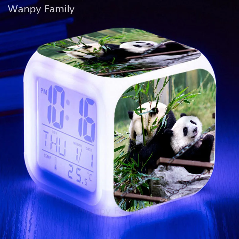 Милые Гигантские панды Будильник 7 цветов светящиеся светодиодные Многофункциональные электронные часы детский подарок студенческий Настольный цифровой будильник