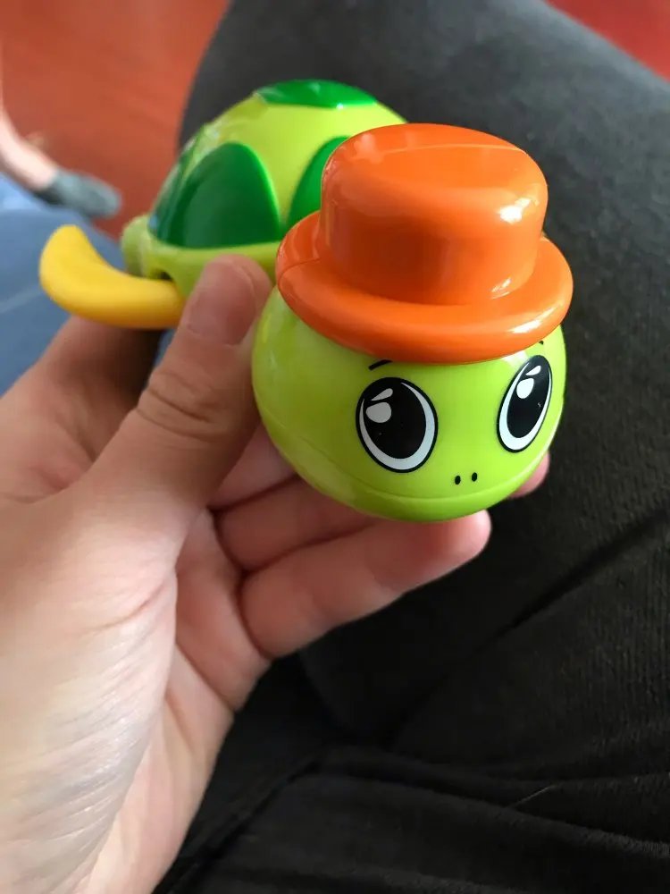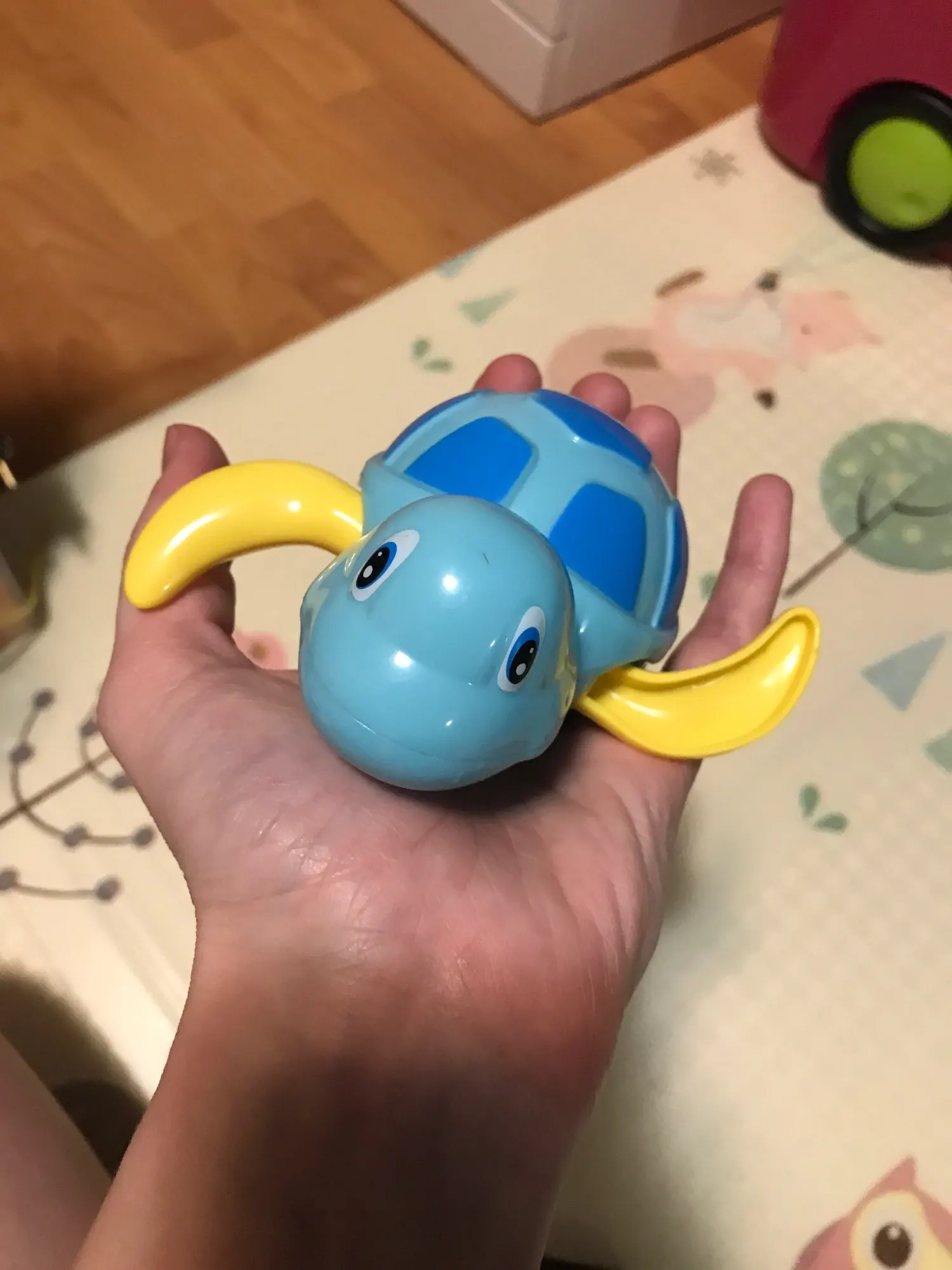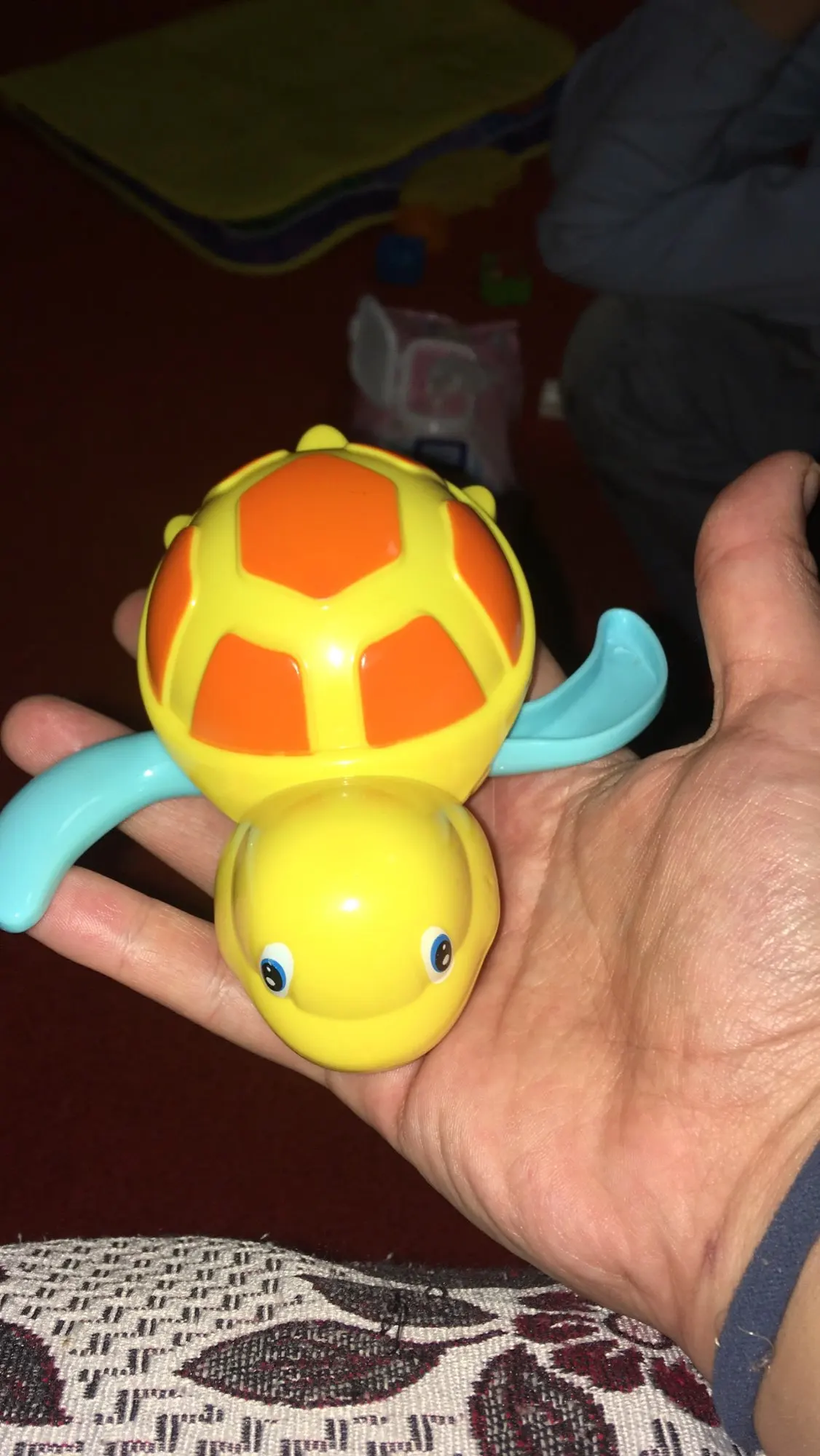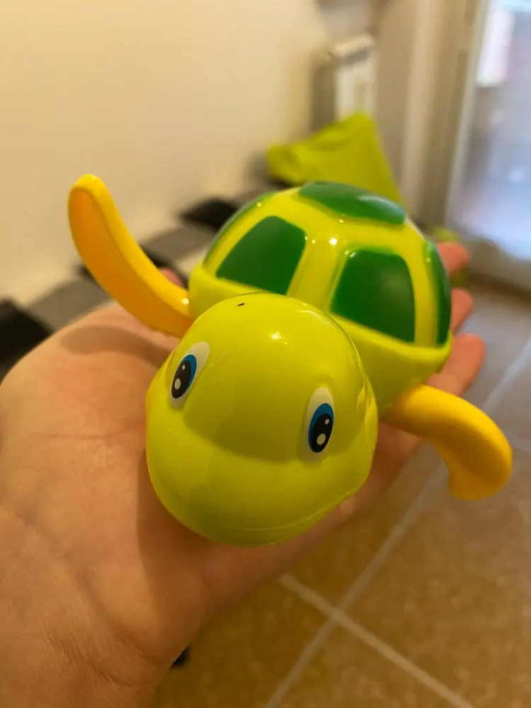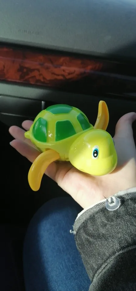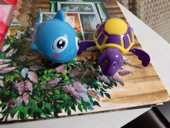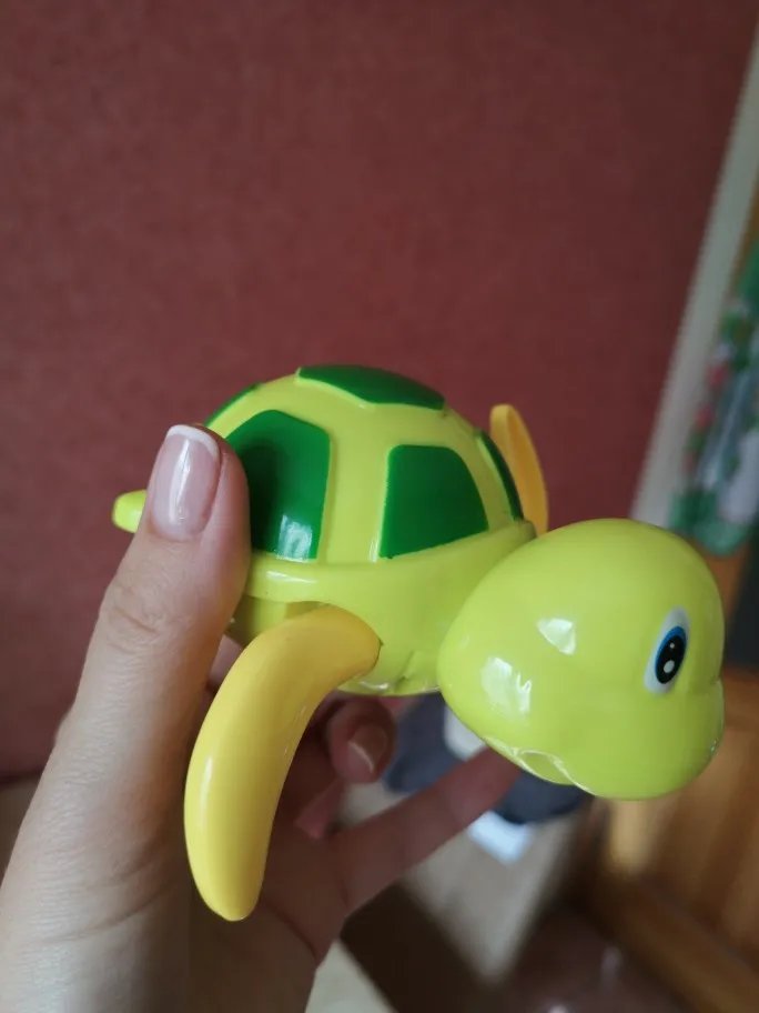 Получила желтую черепашку. Она мне очень понравилась. Хороший заводной механизм. Прекрасное качество. Надеюсь, что когда ребенок немного подрастет, то ему будет нравится плескаться в ванной с этой заводной водоплавающей игрушкой.