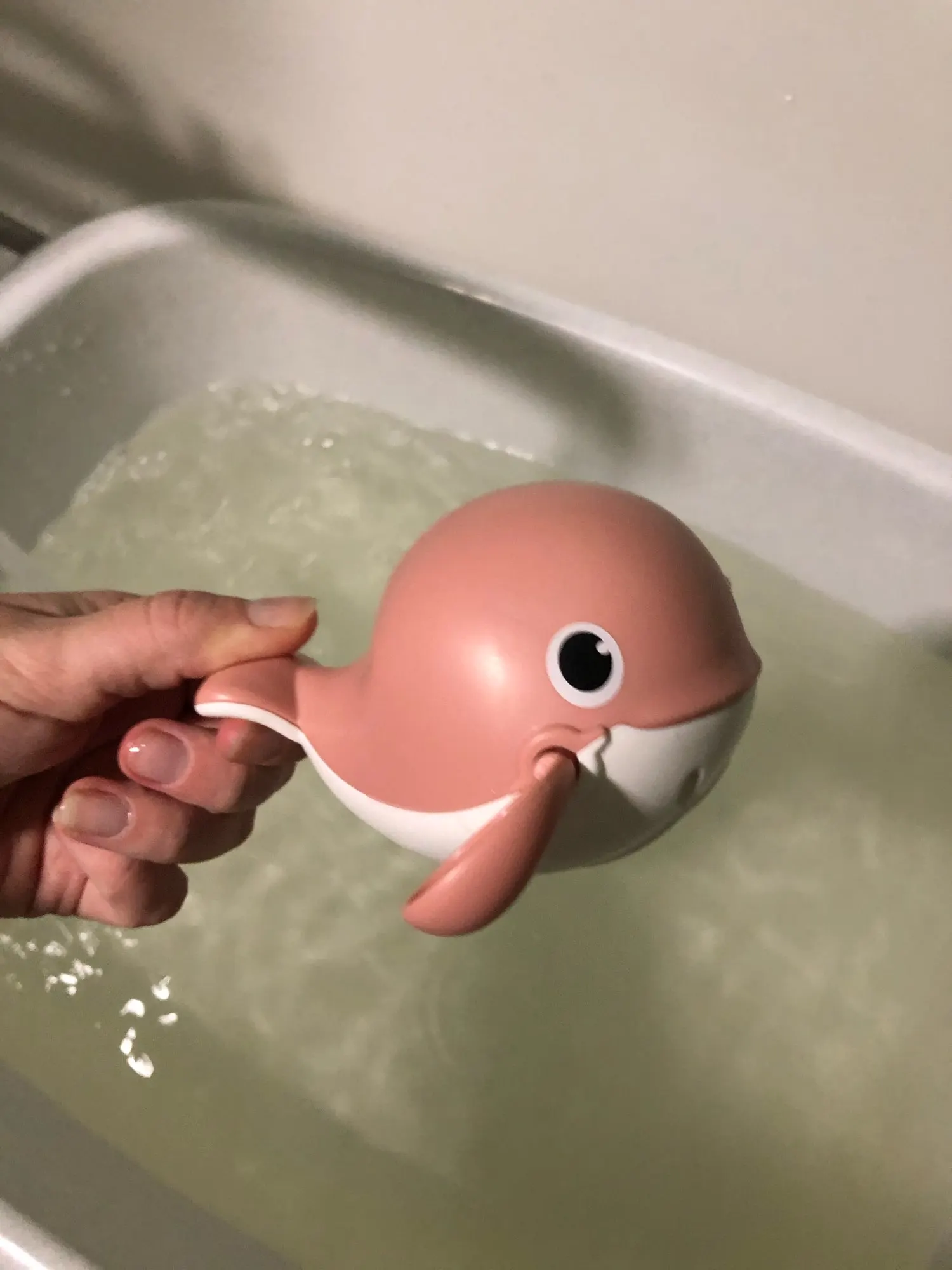 Хорошая игрушка. Не мелкая. Ребёнок доволен, из ванны теперь не вытащишь)