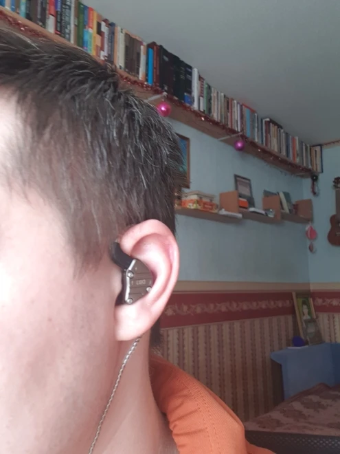 В ушах сидят отлично, не выпирают...Звук не идеальный но все частоты читаются, в отличии аирподсов и бадсов... Качество провода так себе...но можно и заменить на получше... В целом....качественные уши которые не жалко потерять...