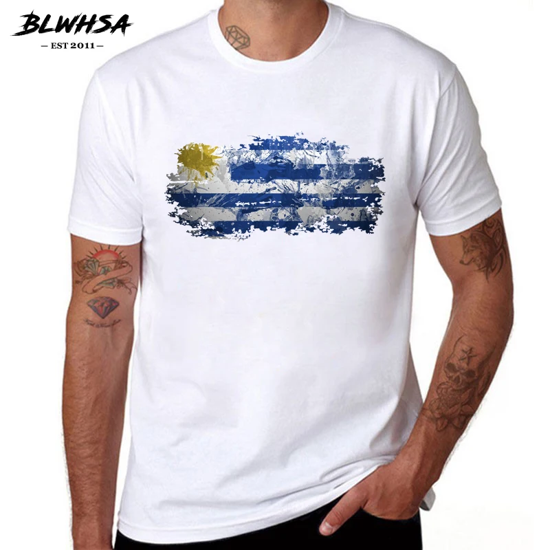 Мужская футболка с принтом BLWHSA, белая футболка с коротким рукавом, круглым вырезом, лето флаг Уругвай г., флаг Уругвай