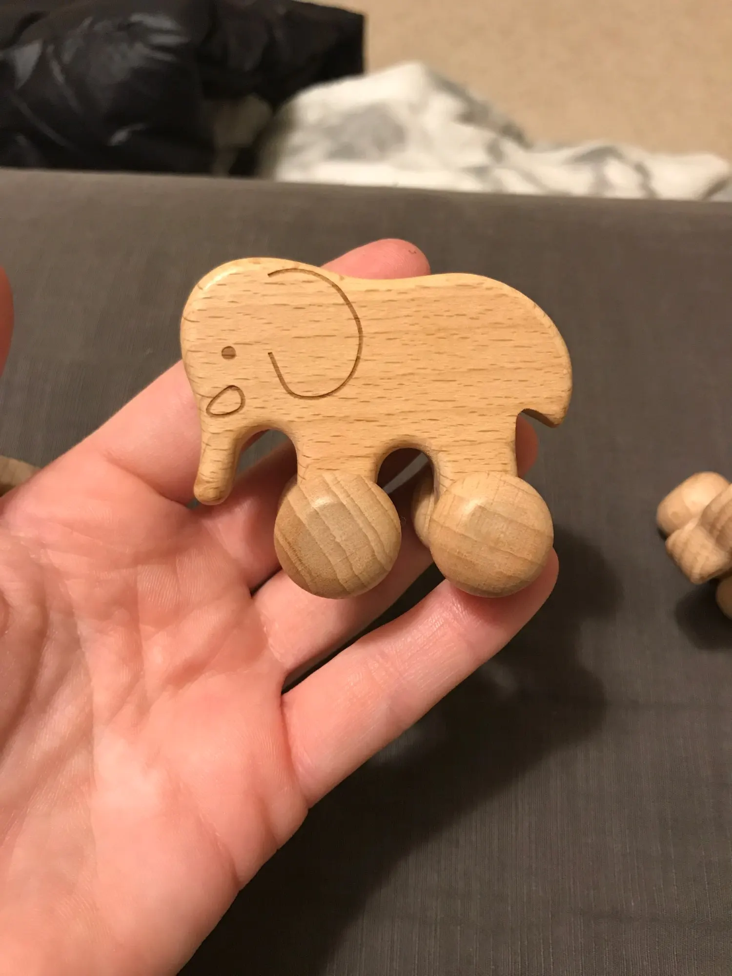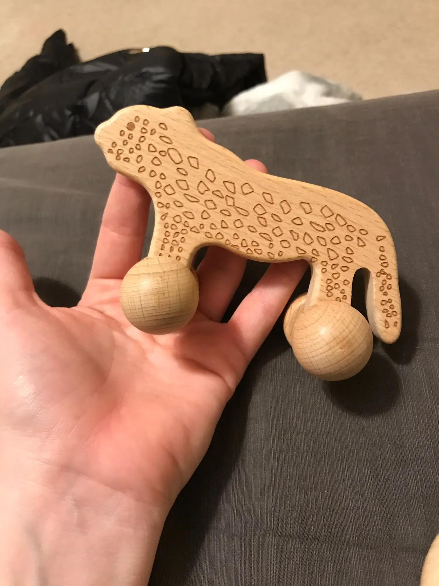 Милая маленькая пищащая игрушка. Это голая древесина, ничего не покрыта. Наш малыш не был в этом заинтересованы.