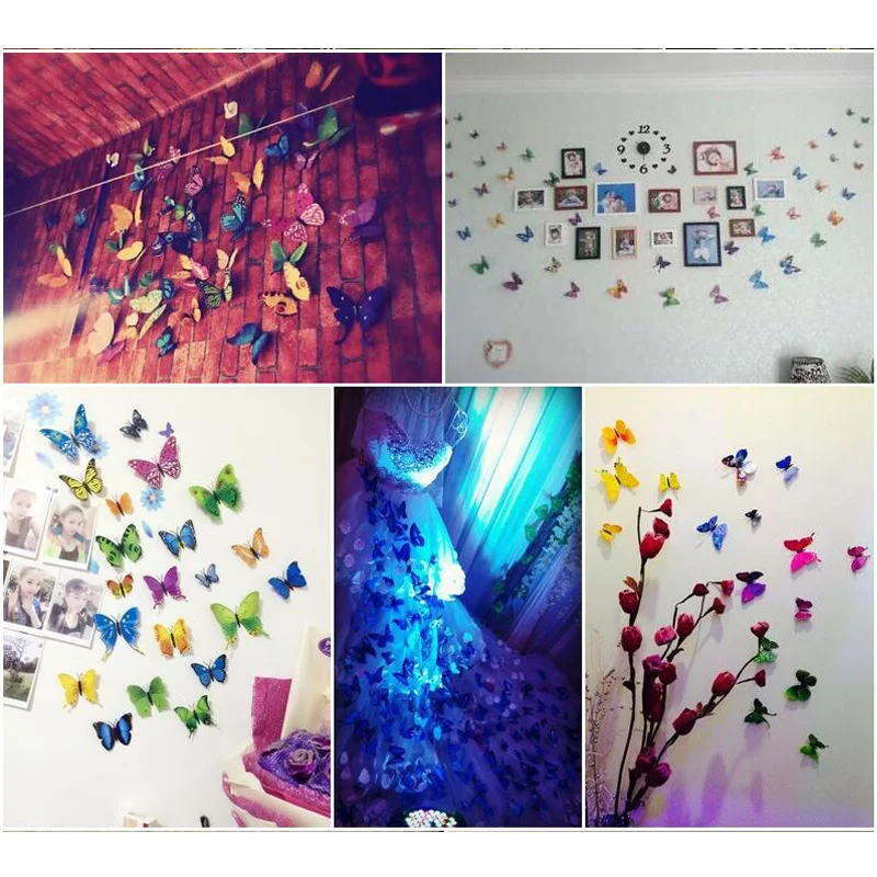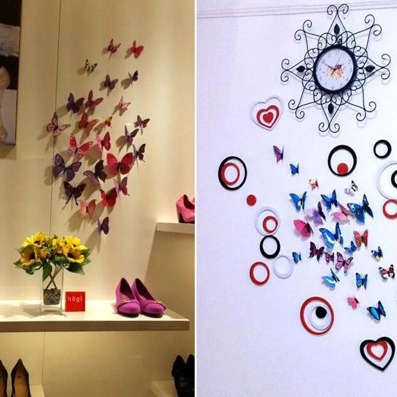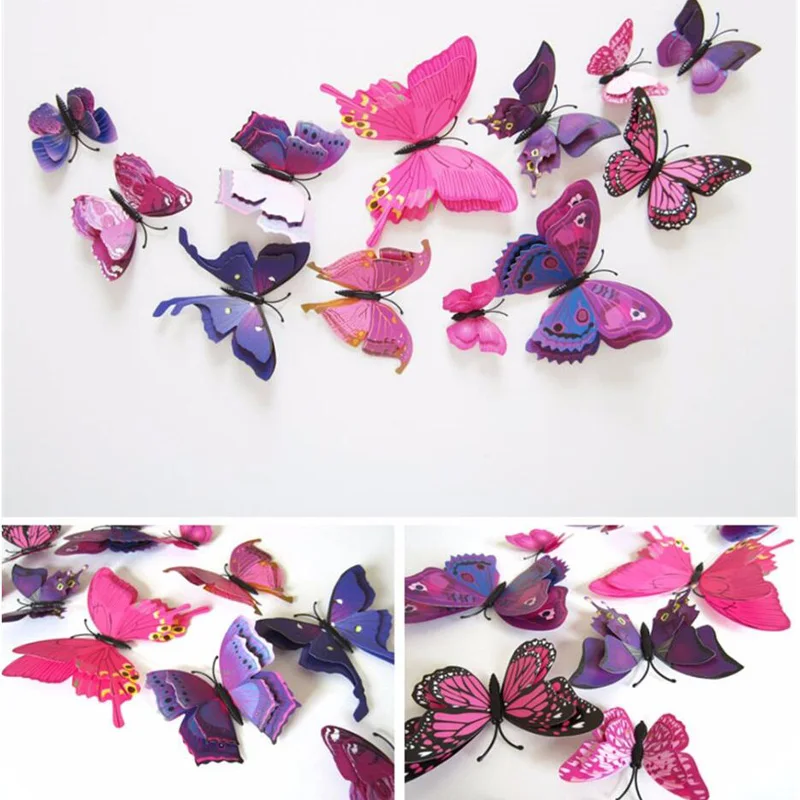 12 шт. 3D двухслойные наклейки на стену с бабочками для домашнего декора DIY бабочки магнитные наклейки для холодильника украшения комнаты
