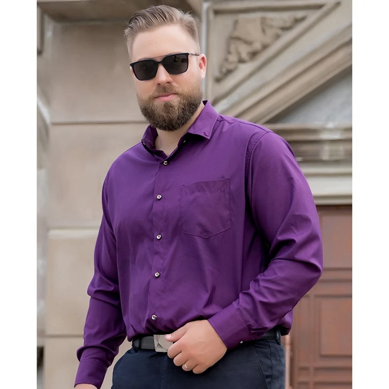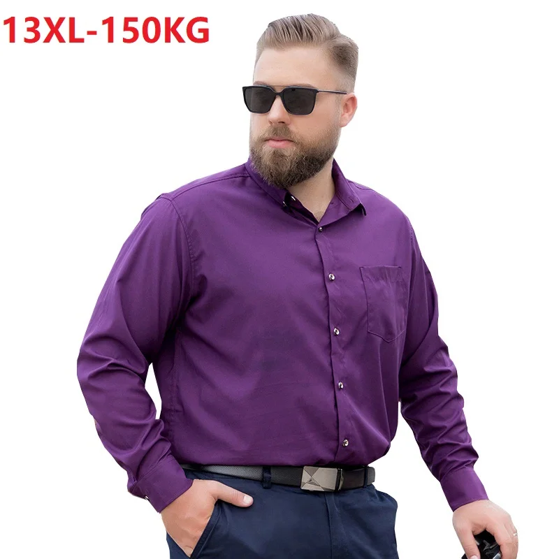 Осенняя Высококачественная мужская формальная рубашка с длинным рукавом размера плюс, платье для сцены, рубашка для свадьбы, большие размеры 8XL 9XL 10XL, Офисная рубашка фиолетового цвета