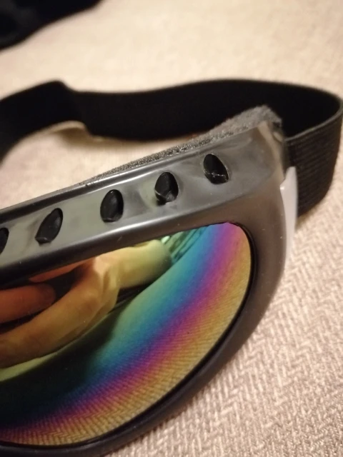 За свою невысокую цену прекрасные очки, хоть сделаны не очень качественно. Пришлось менять резинку, поскольку родная сидела туго даже на лысой башке - не то что поверх шапки. Поролоновая прокладка приклеена так себе и к краю очков липнут волокна шапки и вообще касаться неприятно, лучше сразу оторвать и чем-нибудь прикрыть липкий край. Вокруг углублений торчат пластиковые заусенцы. Кроме того, не смотря на наличие вентиляционных отверстий, стёкла жутко запотевают до нулевой видимости, так что без специальных средств не обойтись - но это, вероятно, так с любыми горнолыжными очками. Стёкла достаточно тёмные, поэтому рассчитаны только на дневное время, желательно достаточно солнечное. Тем не менее, неплохо защищают от ветра и вполне подходят для зимней велоезды. Что весьма приятно удивило - стекло чистое, идеально ровное и без единой царапины)