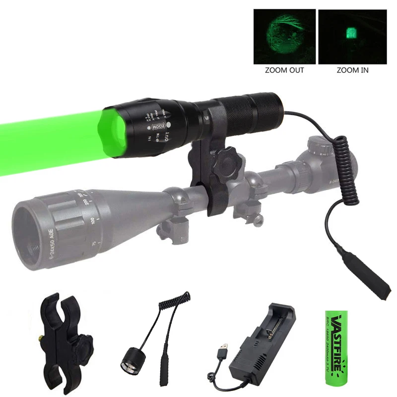 Фонарик охотничий XM-L T6, 5000 лм, светодиодный фонарик, тактический зеленыйкрасныйбелый фонарь, пульт дистанционного управления, реле давления, крепление, аккумулятор 18650, зарядное устройство