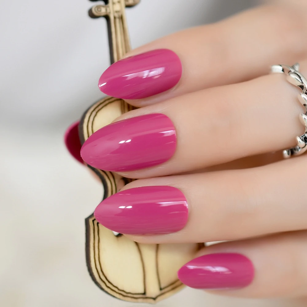Накладные ногти миндаль овальные острые средние фиолетовые красные накладные ногти на шпильках розовая роза заостренный гель с полным покрытием ежедневная одежда накладные ногти