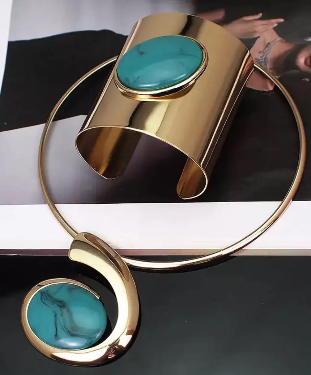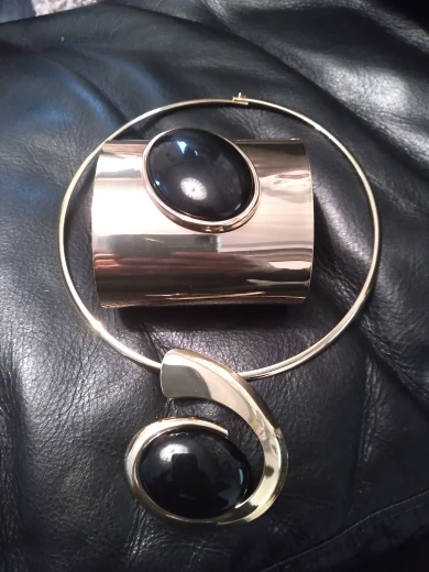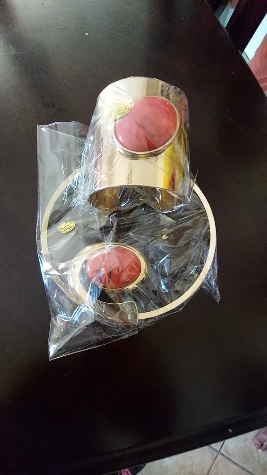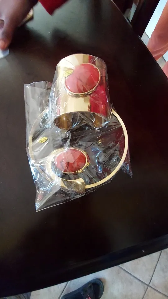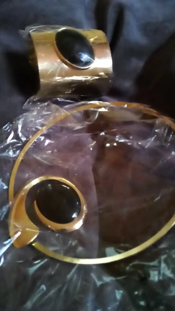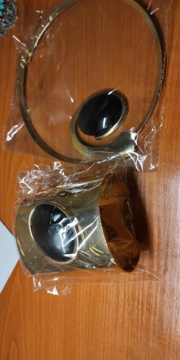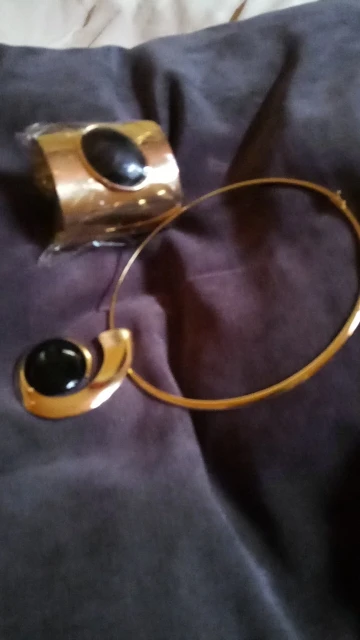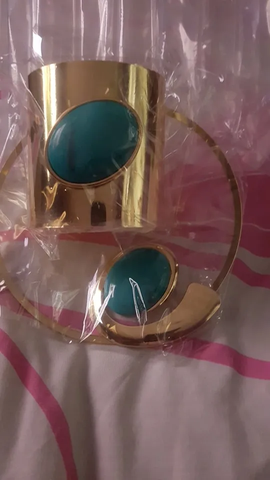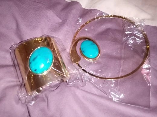 Товар получила просто в рекордные сроки. Очень быстрая доставка. Ожерелье носить можно, а вот браслет придется выкинуть, там очень видные изъяны. Металл потерт и вздутие при покраске. И на мою руку браслет очень широк.