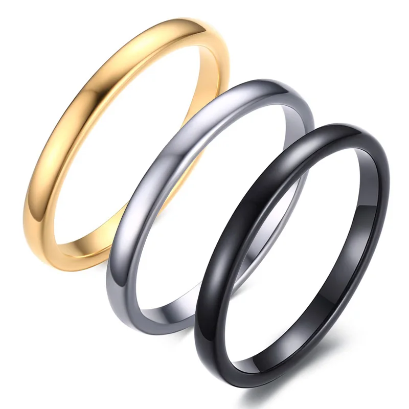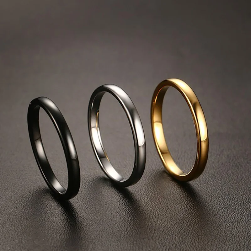 Маленькие простые милые женские кольца черного, серебристого и золотого цветов, трендовые 2 мм вольфрамовые карбидные Свадебные Кольца для женщин, ювелирные изделия, подарки