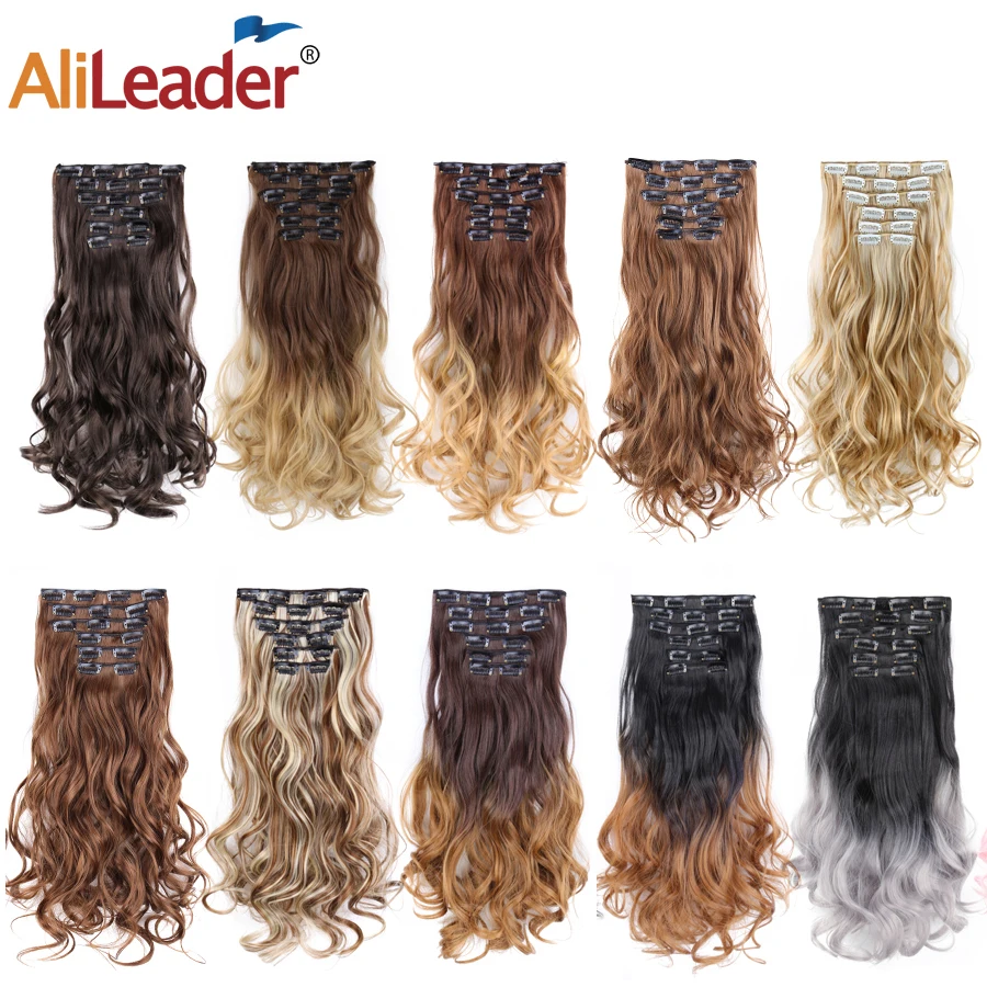 Волосы Alileader для наращивания, 22 дюйма, 16 заколок, волнистые синтетические волосы из высокотемпературного волокна, черные, коричневые, Омбре
