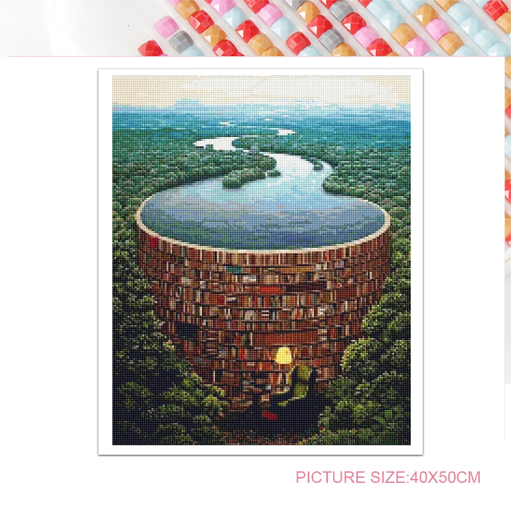 Алмазная 5d картина сделай сам, вышивка, пейзаж, лес, библиотека, вышивка крестиком, квадратная Круглая Мозаика, декоративное искусство, хобби, подарок