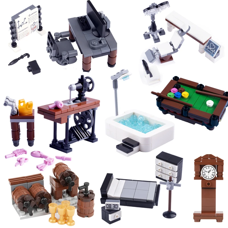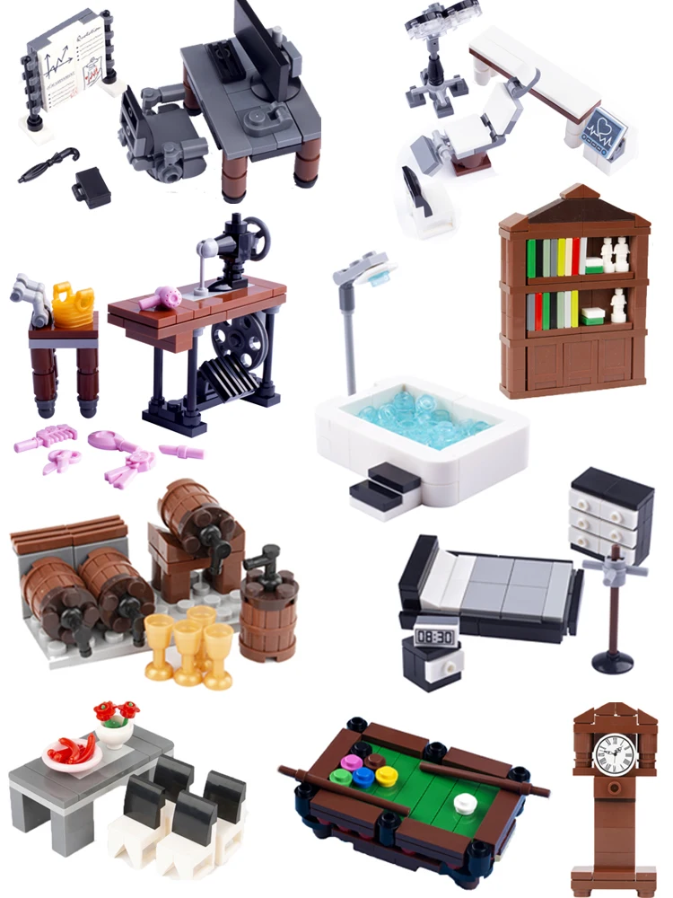 Строительные блоки MOC Mini City, мебель, спальня, модель, фигурки,...