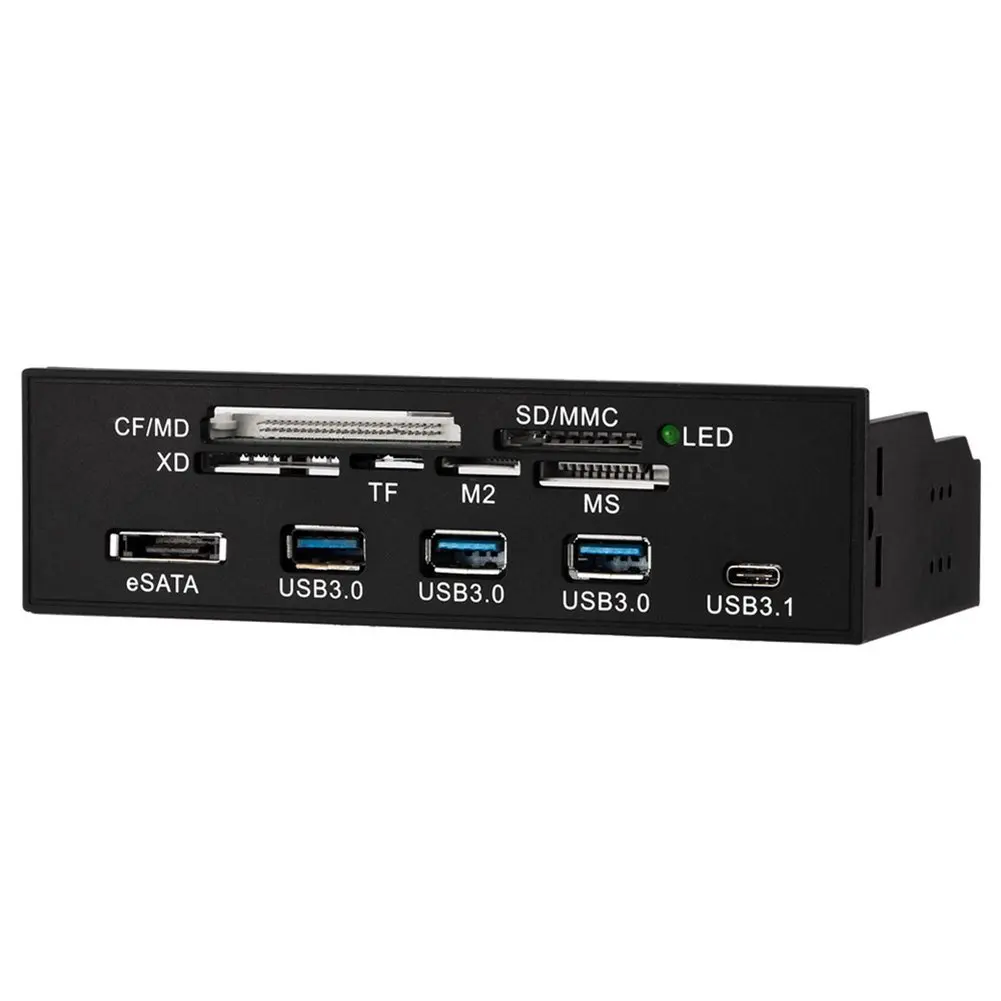 Интерфейс передачи: USB 3,0, USB 3,1, eSATA Поддержка карт M2, MSO, SD, MS, XD, 64G CF Материал: пластик Цвет: черный Посылка: 1x5,25 "Компьютерная Передняя панель