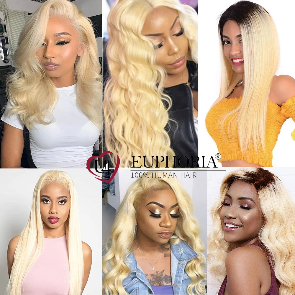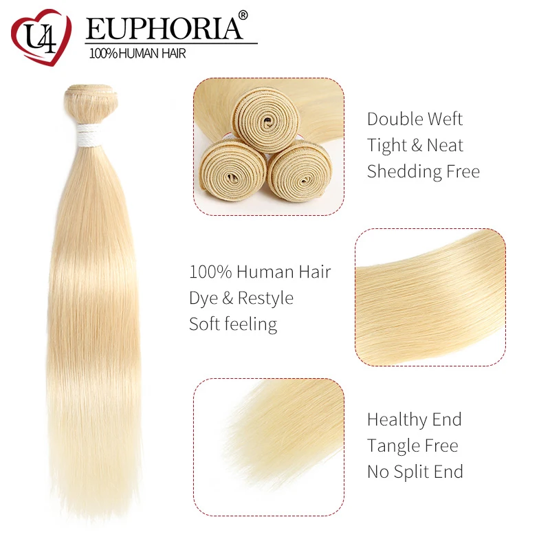 Медовый блонд 613 прямые пряди волос Плетение Омбре блонд 134 шт бразильские Remy человеческие волосы пряди для наращивания EUPHORIA