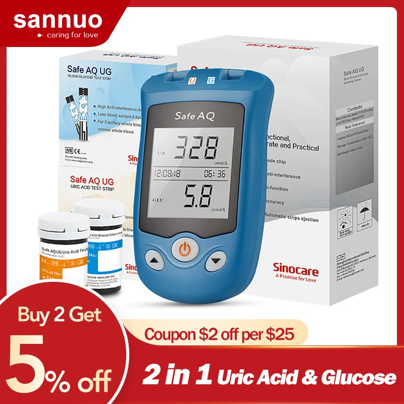 Глюкометр SINOCARE, 2 в 1, безопасный, для пациентов с подагой