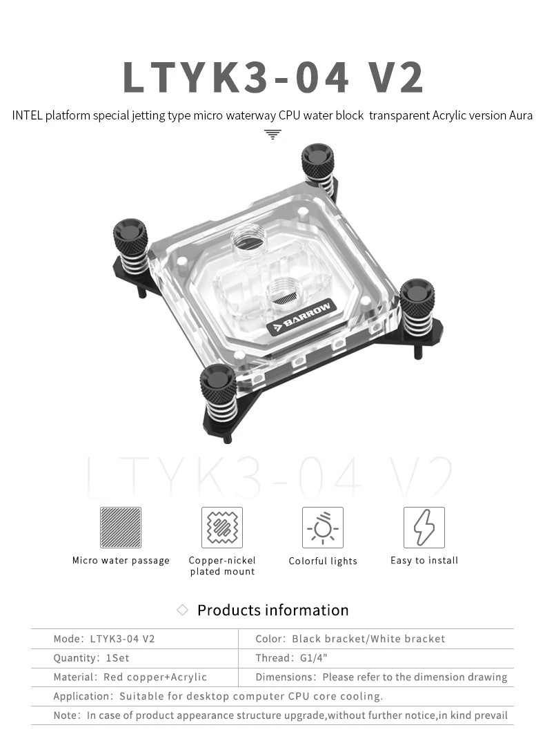 Водяной блок для процессора Barrow, для Intel LGA1150, 1151, 1155, 1700, 1200, разъем RGB светильник ка, совместим с 5 В GND, на медной материнской плате
