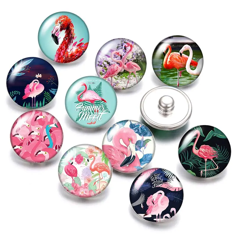 Модные пуговицы DB0570 с фламинго и птицами, 18 мм, 10 шт., Смешанные Круглые Стеклянные Кабошоны для фотографий, стильные ювелирные пуговицы