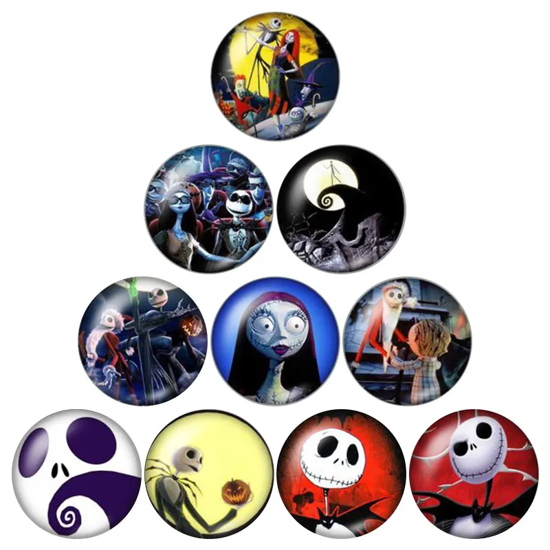 Джек Скеллингтон злое лицо череп 18 мм кнопки 10 шт. круглые фото кабошоны разрисованные изделия из стекла стиль для кнопки ювелирные изделия