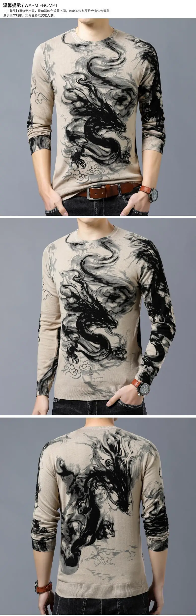 Кашемировый хлопковый приталенный свитер, Мужская одежда, осень-зима 2020, Модный пуловер с драконом, мужской свитер, мягкий джемпер с круглым вырезом для мужчин