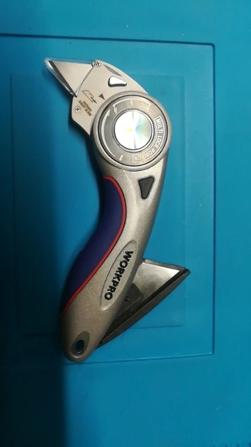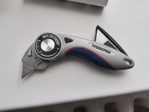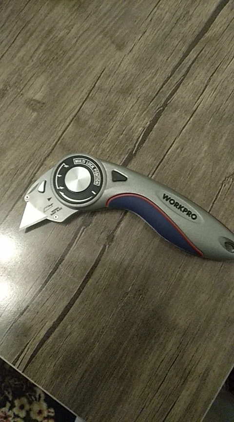 Приехал просто мгновенно, курьером домой. Инструмент приятно лежит в руке. Металлический. Есть ощущение прочности и надёжности. В рукоятке несколько запасных лезвий. Показалось, что лезвие излишне болтается в держателе. Присутствует небольшой люфт. В остальном хороший инструмент.
