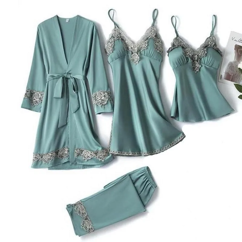 YAO TING женская пижама шелковая как Леди Удобная Весенняя цветная ...
