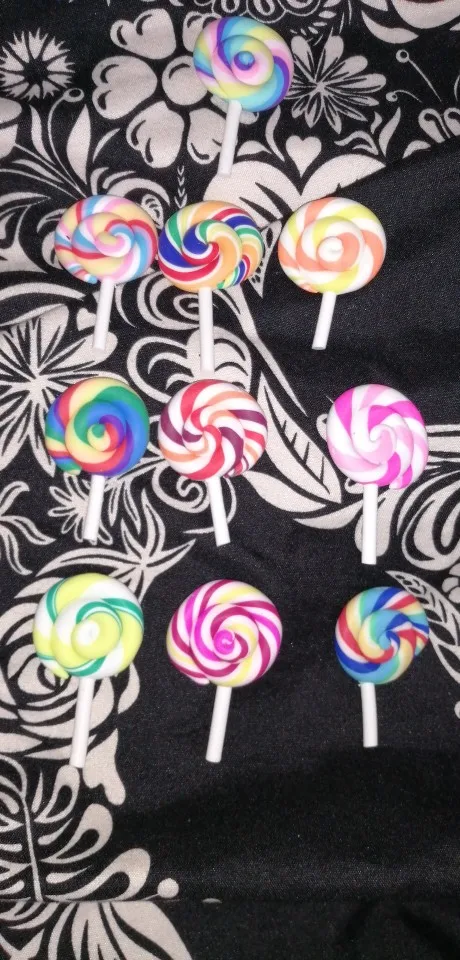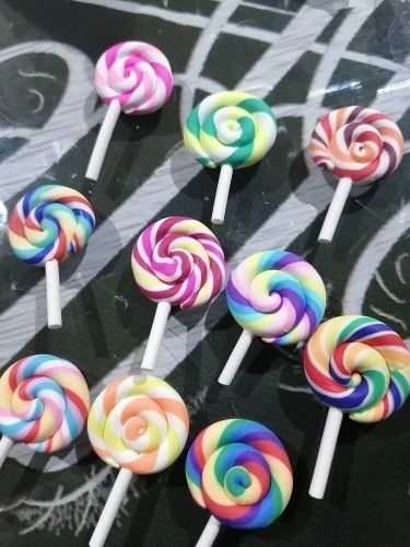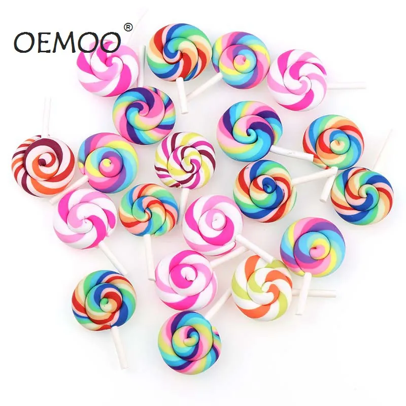 10 шт. спиральные радужные кабошоны из полимерной глины, красота леденец Kawaii, Леденцы с плоской основой для украшения телефона
