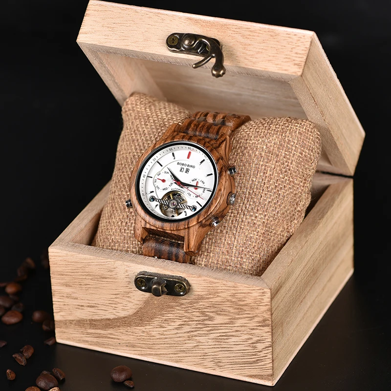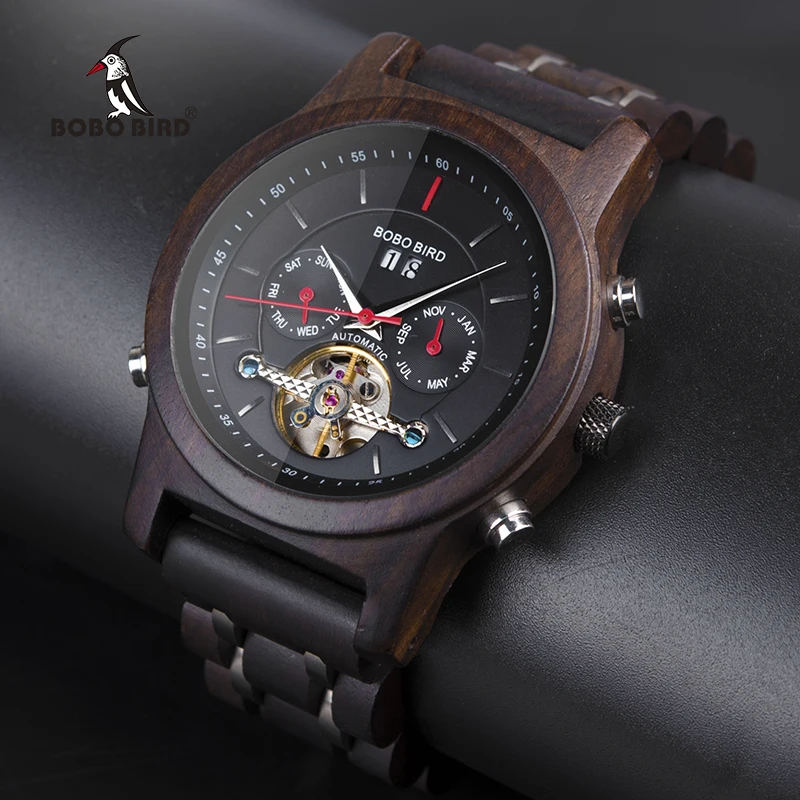 Автоматические механические часы-скелетоны BOBO BIRD, мужские роскошные деревянные часы с автоподзаводом
