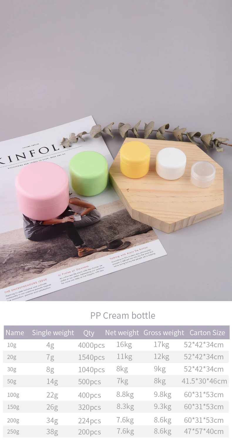 Оптовая продажа 10203050100250g Пластик бутылки многоразового использования Пластик пустой Макияж Jar горшок PP крем, гель для интимной гигиены, косметический контейнер