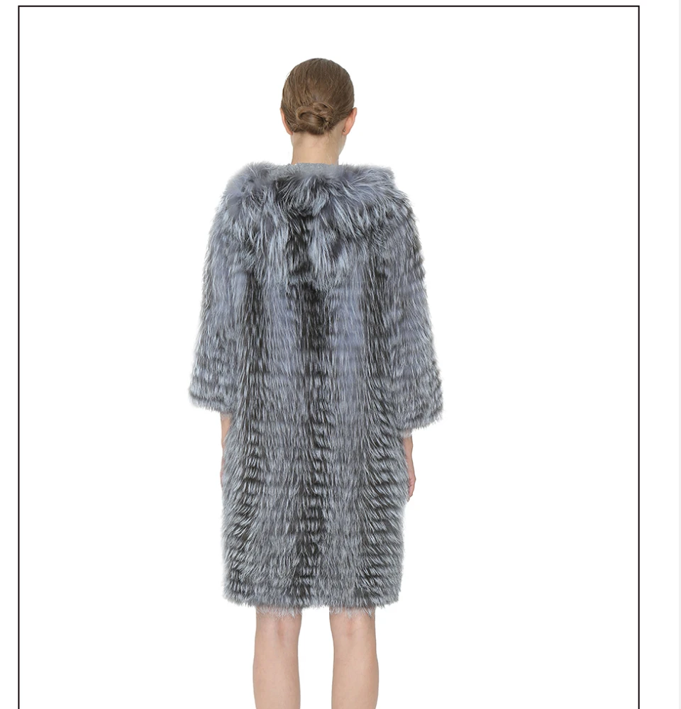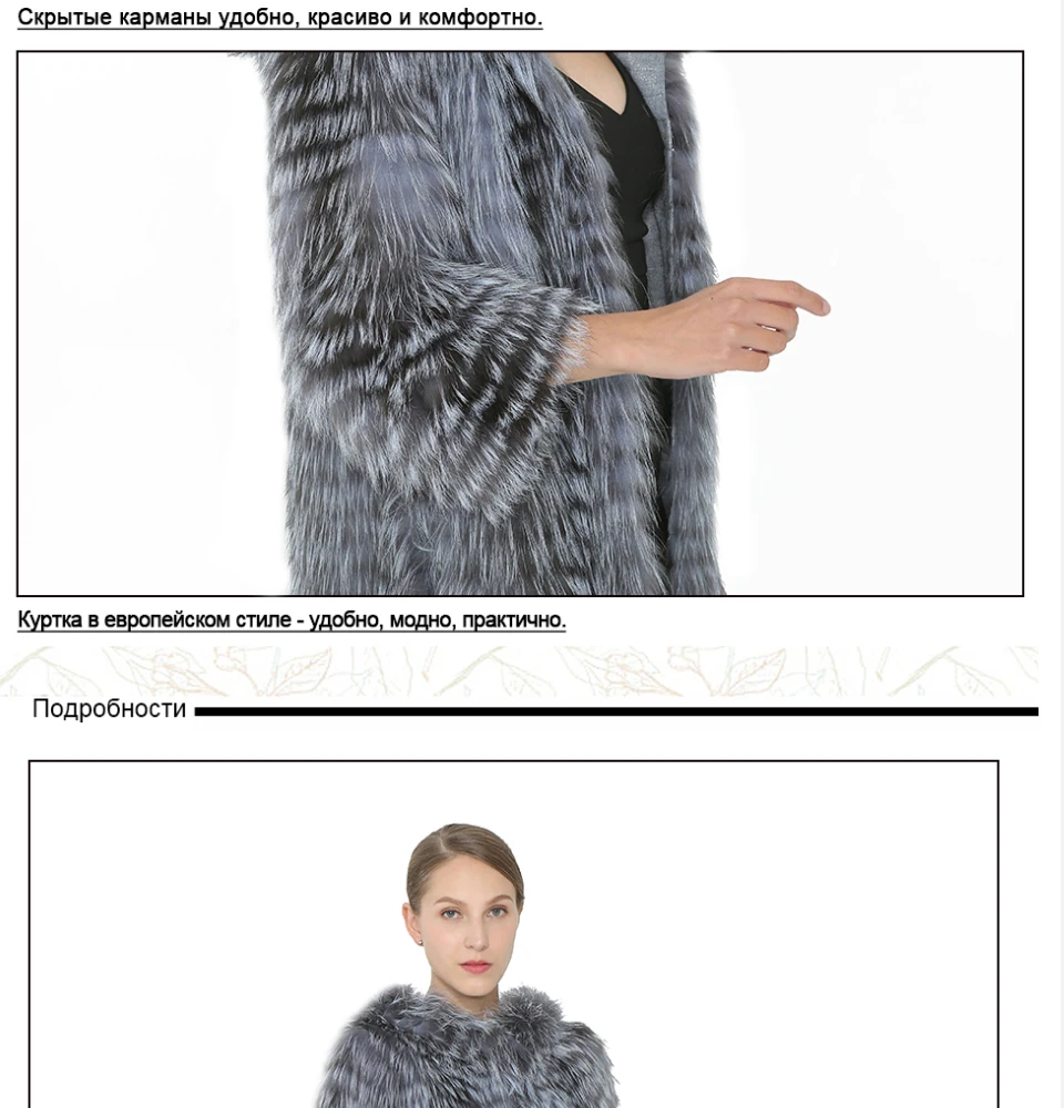 SARSALLYA женщин реального Silver Fox Шубы из натурального меха лисы Женщины куртка натуральный мех длинное пальто жилет Зимняя женская верхняя одежда