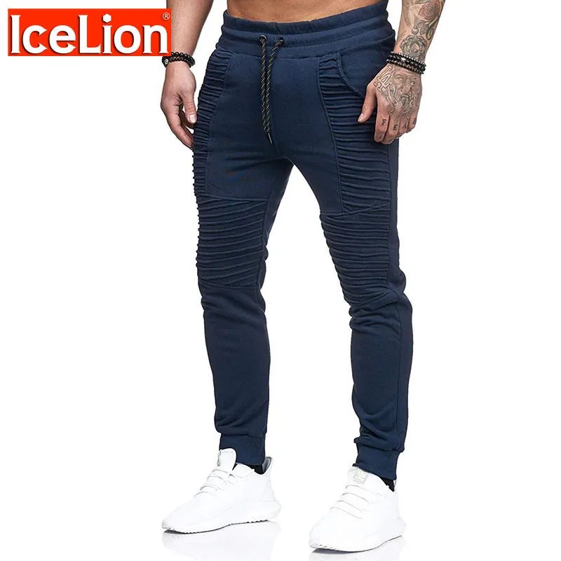 Новинка 2021, модные плиссированные штаны, мужские однотонные, для фитнеса, повседневные мужские брюки, спортивные штаны, уличная одежда, брюки-джоггеры в стиле хип-хоп для мужчин