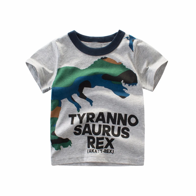 Детская одежда; Одежда для маленьких мальчиков; Летний топ с короткими рукавами; Футболка с принтом динозавра; Модная крутая уличная одежда