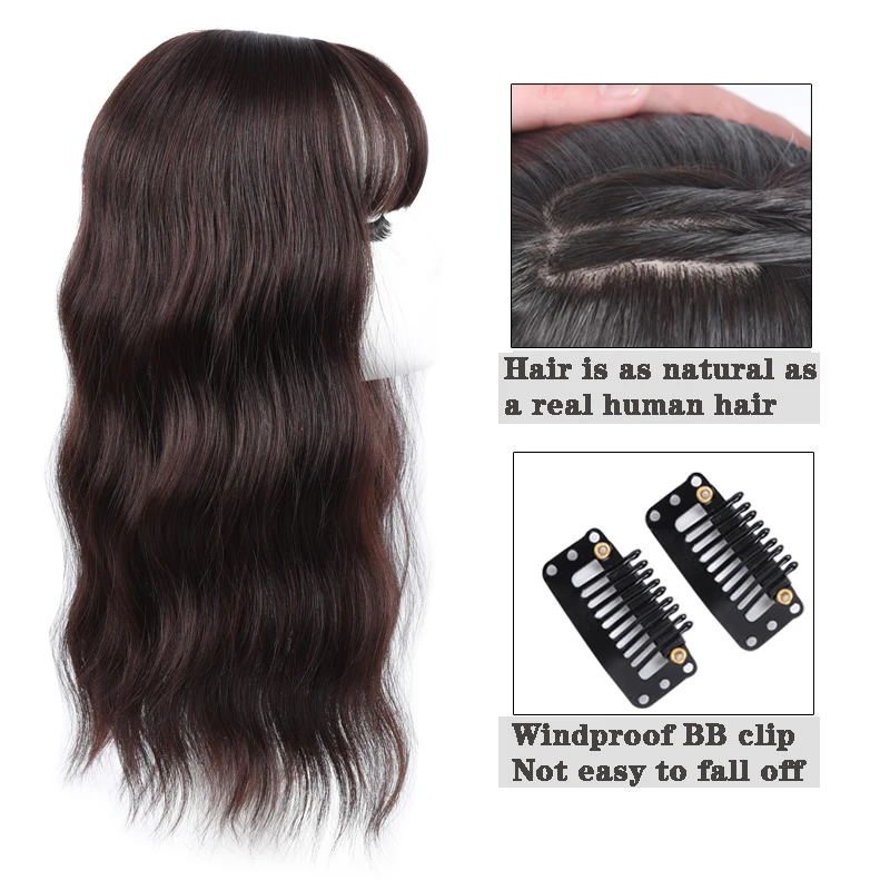 Aosiwig Сменные волнистые волосы с челкой синтетический удлинитель с клипсой черного и коричневого цвета